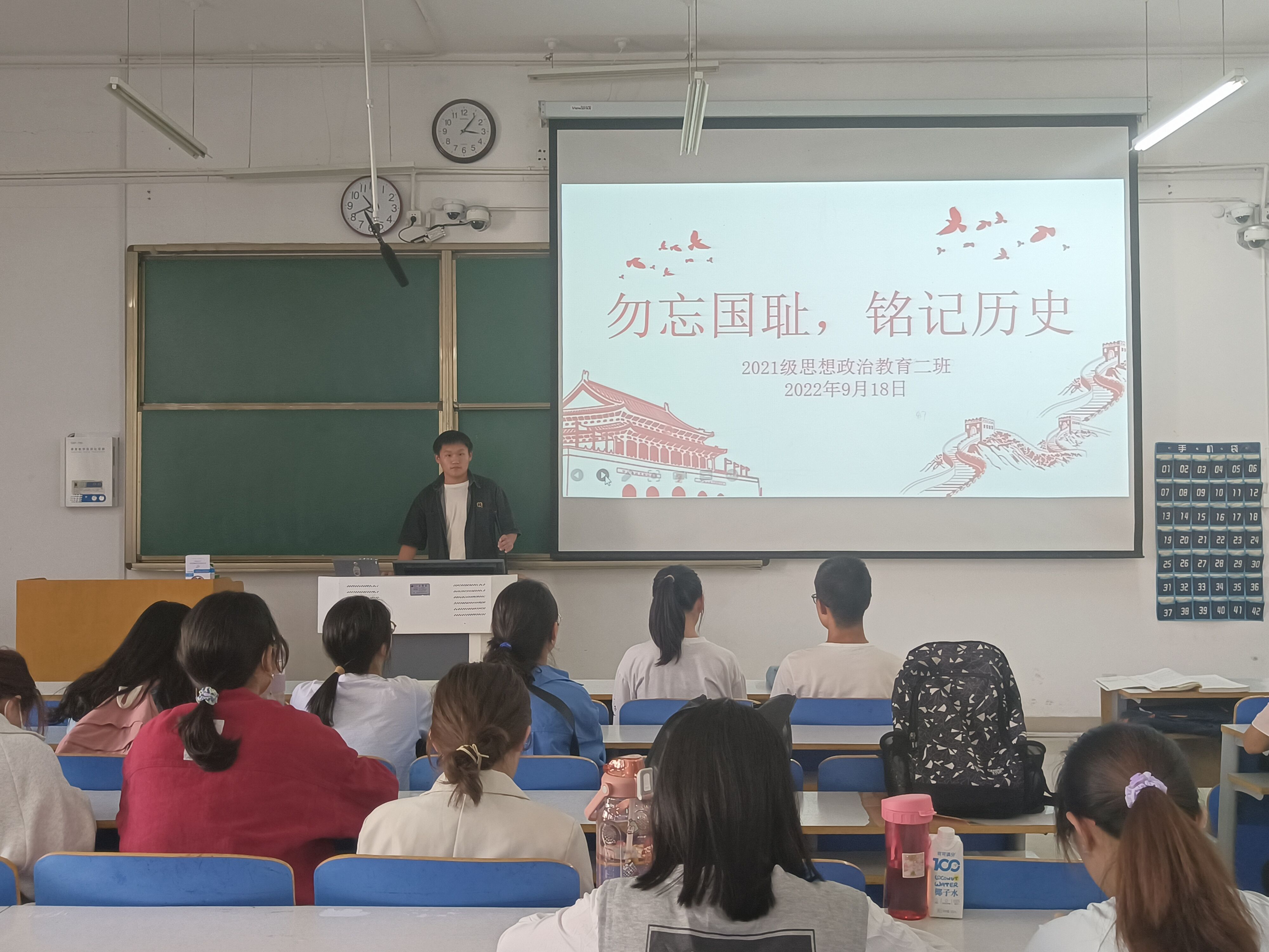 9月18日上午,2026年世界杯官网2021级思想政治教育二班在社科楼514教室召开“勿忘国耻,铭记历史”主题班会。2021级思想政治教育二班全体成员参加此次班会。班会由副班长任振豪主持。