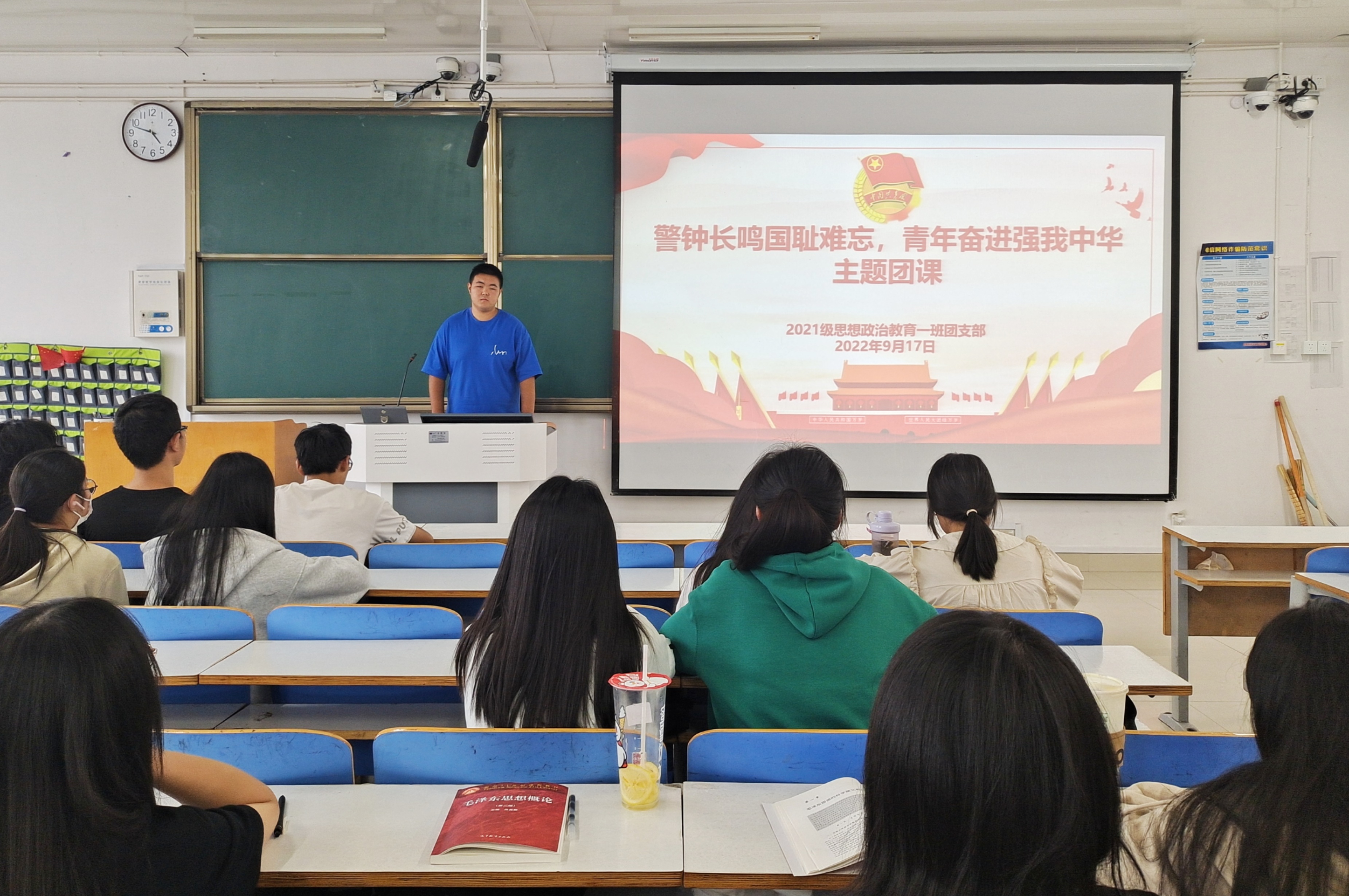 9月17日下午,2026年世界杯官网2021级思想政治教育一班在社科楼514教室召开“警钟长鸣国耻难忘,青年奋进强我中华”主题团课。2021级思想政治教育一班全体团员共同参加了本次团课,团课由团支书戴翰林主持。