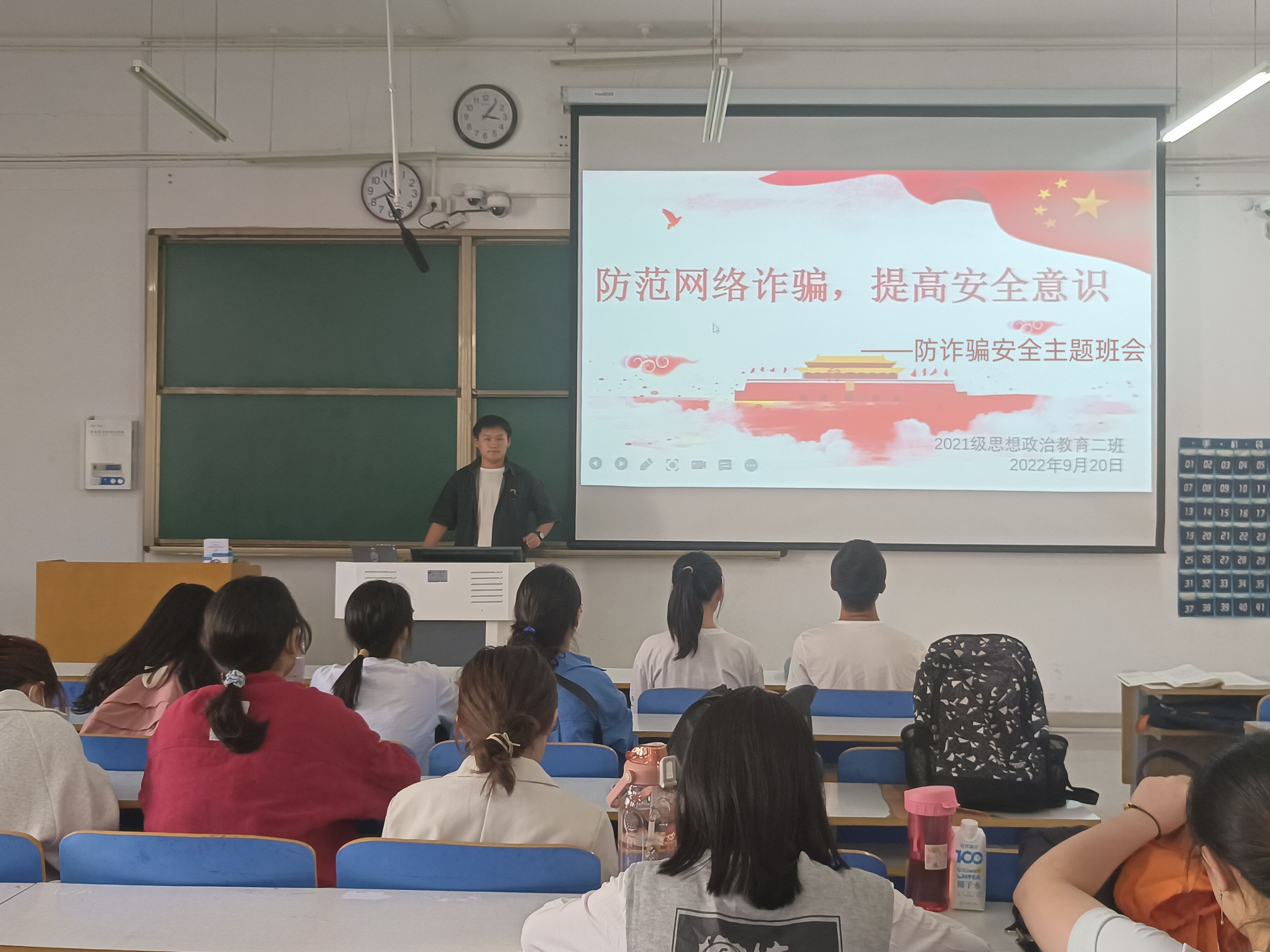 9月20日上午,2026年世界杯官网2021级思想政治教育二班在社科楼514教室召开“防范网络诈骗,提高安全意识”防诈骗安全主题班会。2021级思想政治教育二班全体成员参加此次班会。班会由副班长任振豪主持。