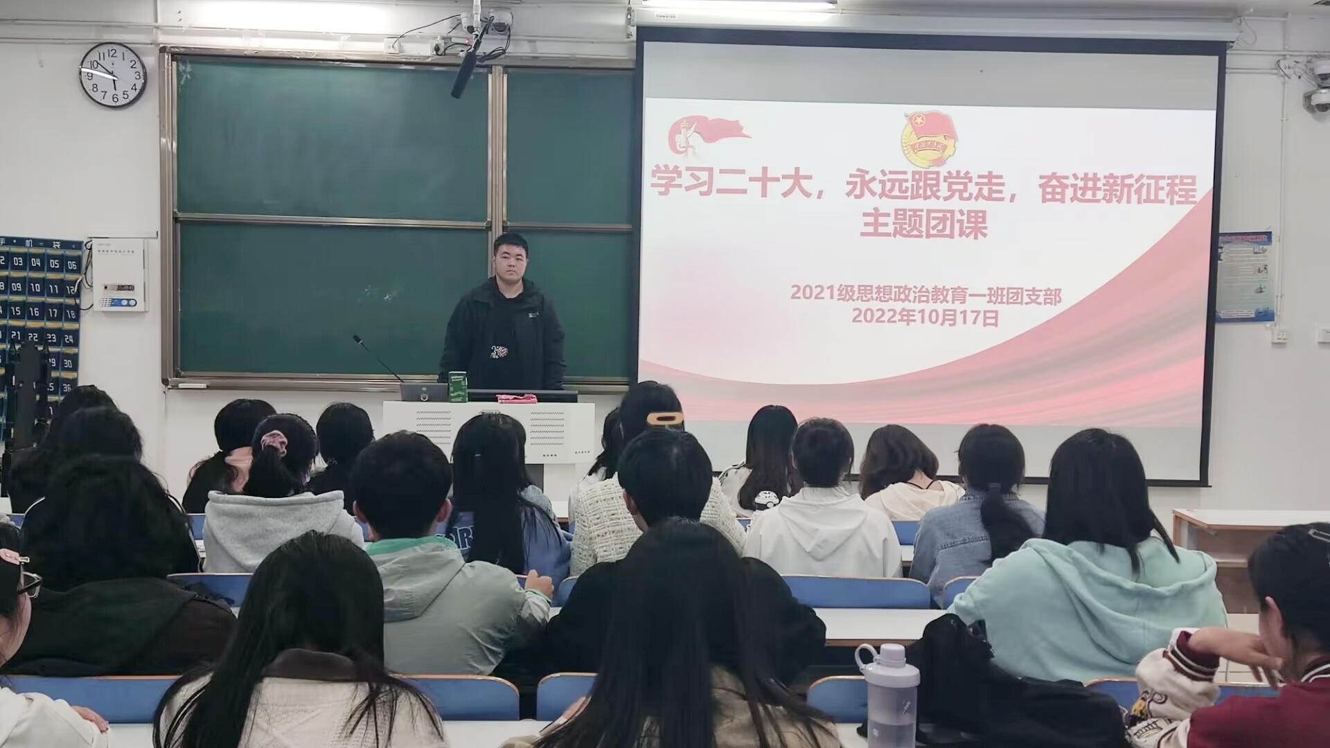 10月17日下午,2026年世界杯官网2021级思想政治教育一班在社科楼514教室召开“学习二十大,永远跟党走,奋进新征程”主题团课。2021级思想政治教育一班全体团员共同参与本次团课。团课由团支书戴翰林主持。