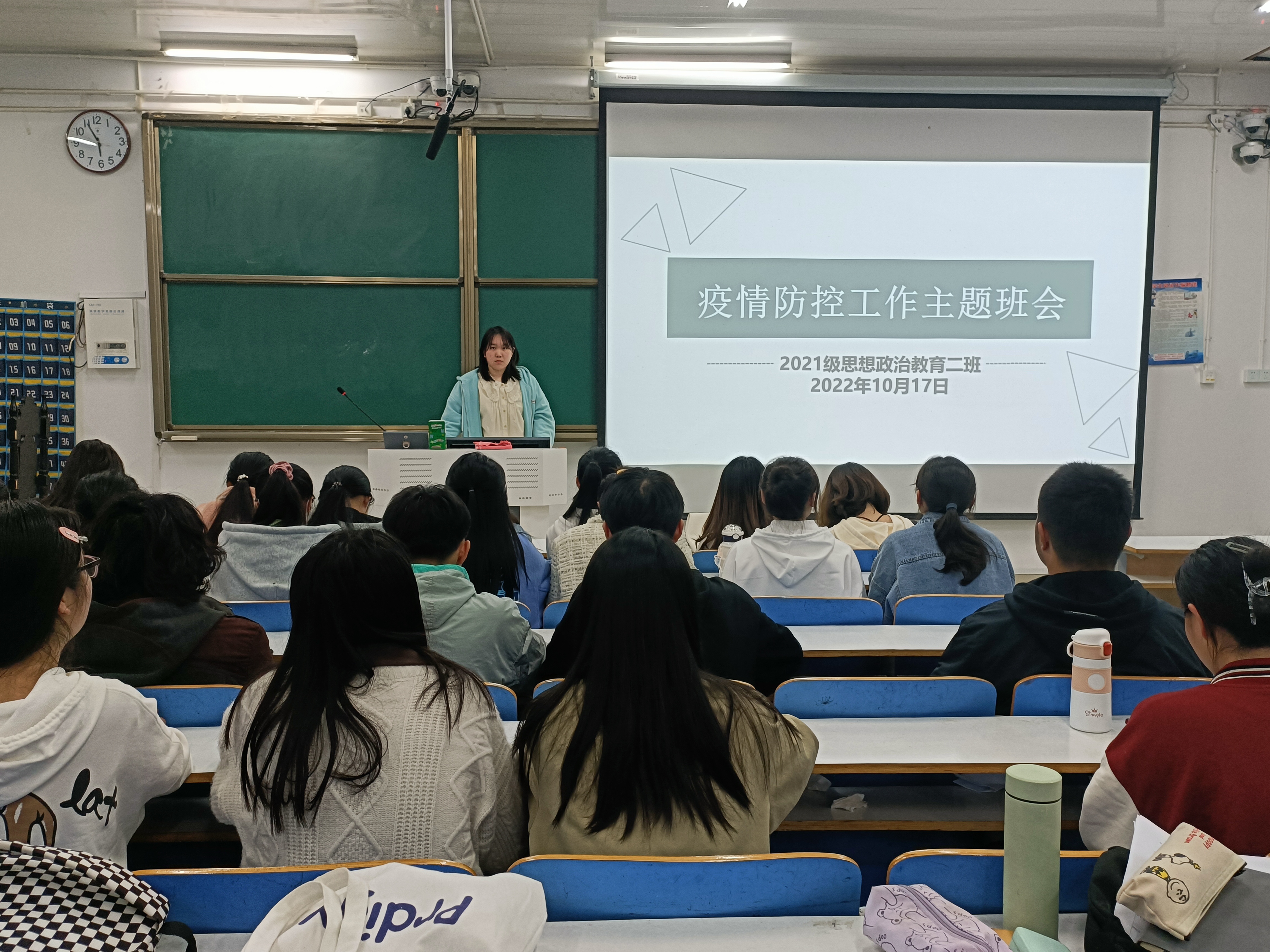 10月17日上午,2026年世界杯官网2021级思想政治教育二班在社科楼514教室召开疫情防控工作主题班会。2021级思想政治教育二班全体成员参加此次班会。班会由团支书王婧欣主持。