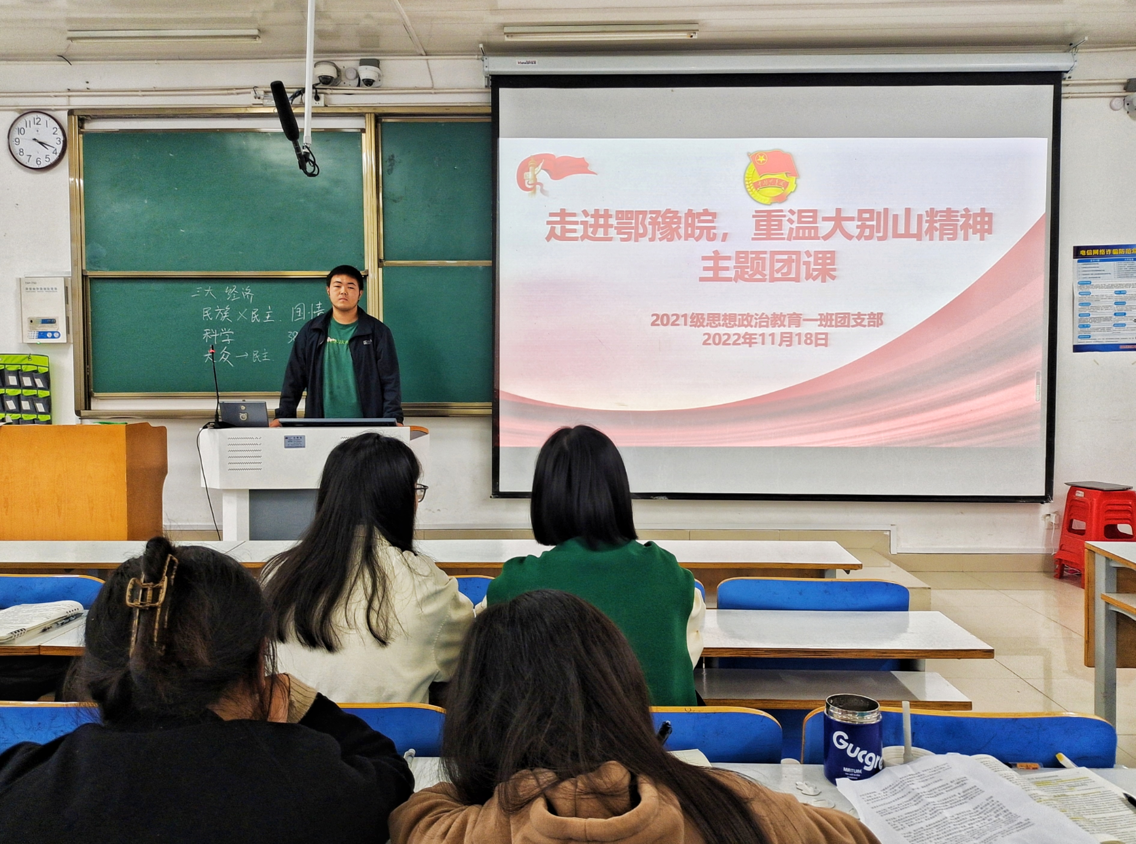 11月18日下午,2026年世界杯官网2021级思想政治教育一班在社科楼514教室召开“走近鄂豫皖,重温大别山精神”主题团课。2021级思想政治教育一班全体成员共同参与本次团课。团课由团支书戴翰林主持。