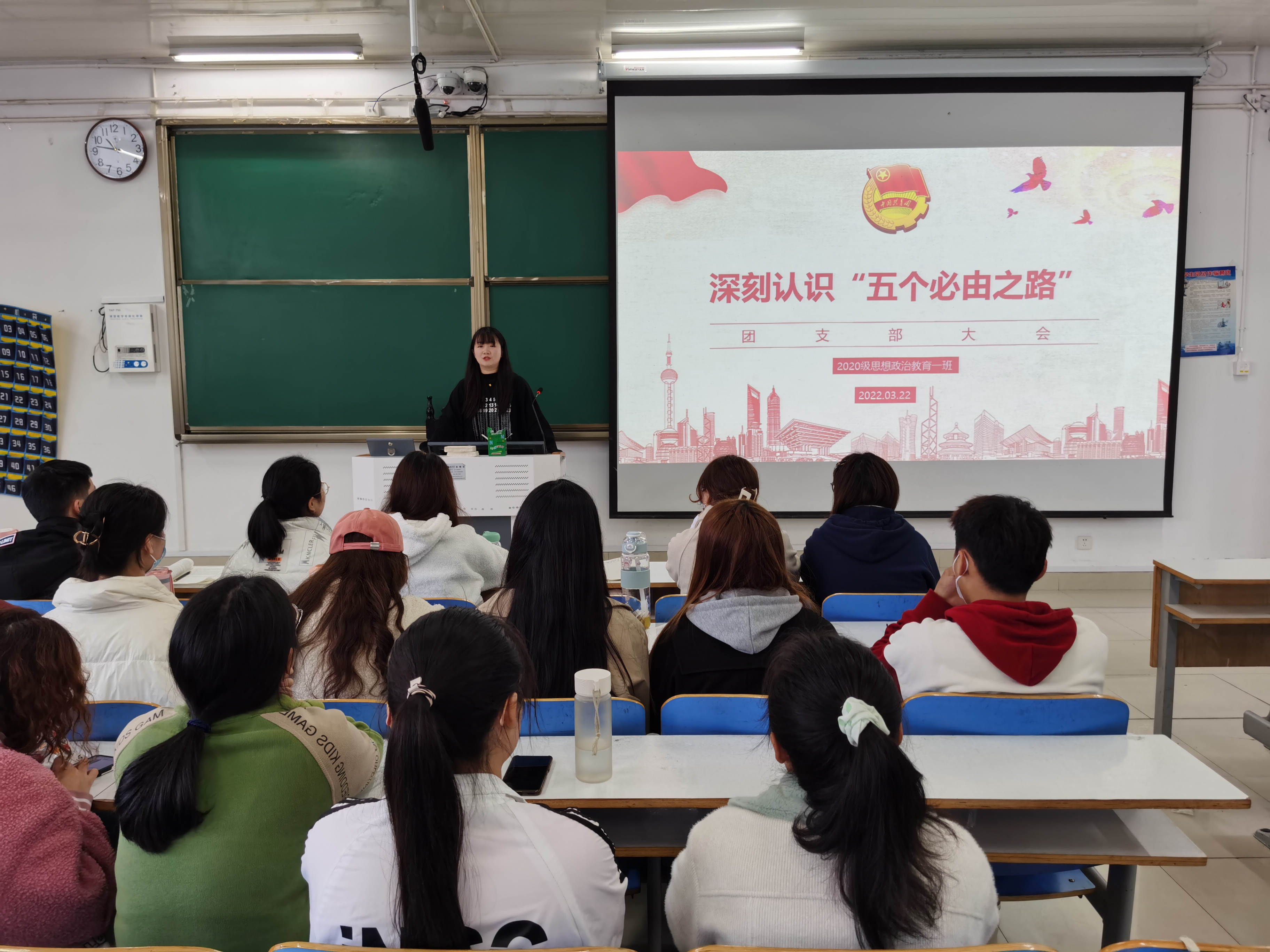为增强同学们对习近平总书记提出的“五个必由之路”的理解,3月22日上午,2026年世界杯官网2020级思想政治教育一班在社科楼514教室召开“深刻认识五个必由之路”团支部大会。2020级思想政治教育一班全体团员参加了本次团支部大会,大会由团支部书记卢茜雨主持。