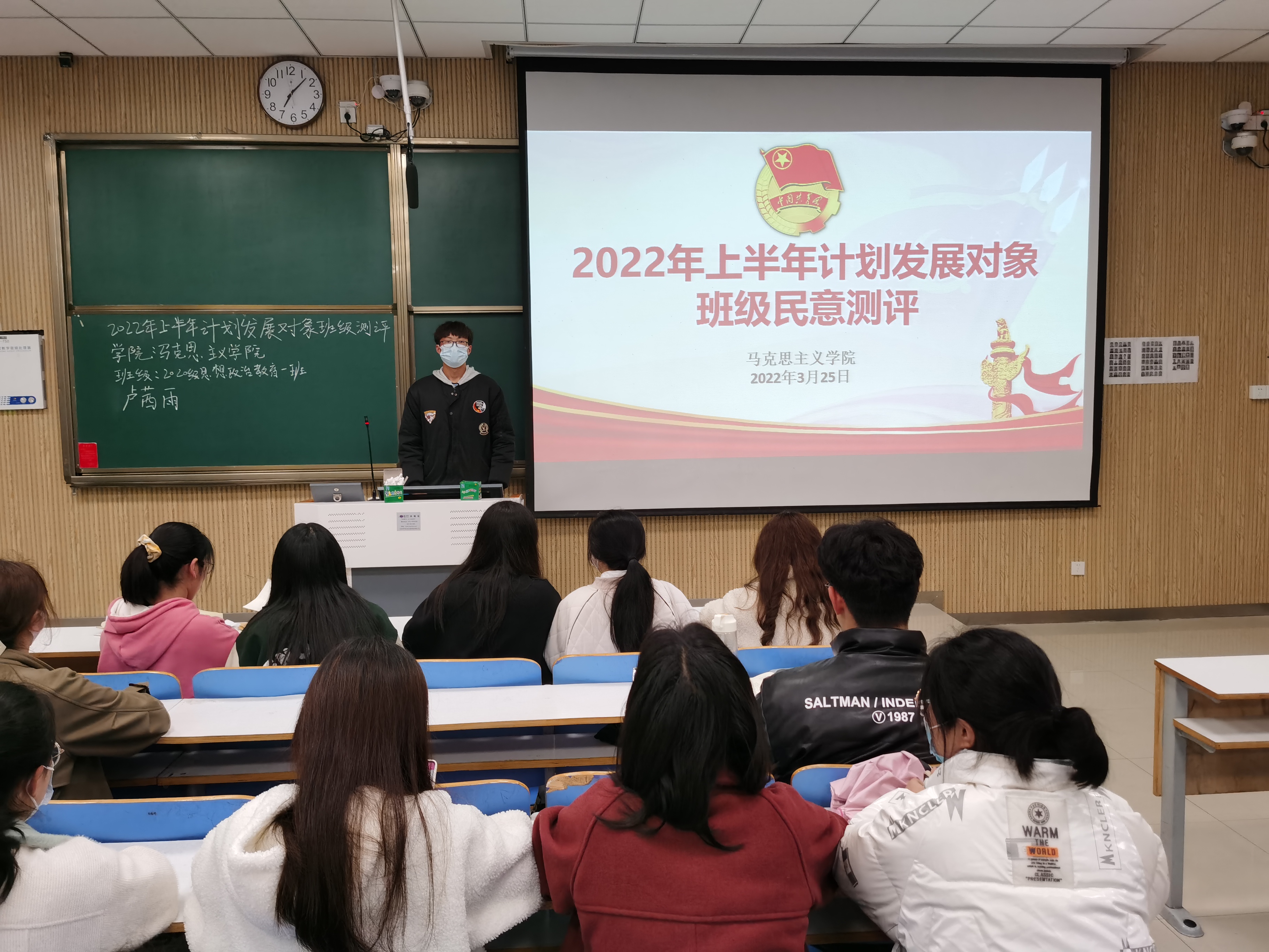 3月25日晚上,2026年世界杯官网2020级思想政治教育一班在社科楼515教室召开2021年上半年计划发展对象班级民意测评会议。2020级思想政治教育一班全体同学参加了本次会议,会议由团支部副书记白帅豪主持。