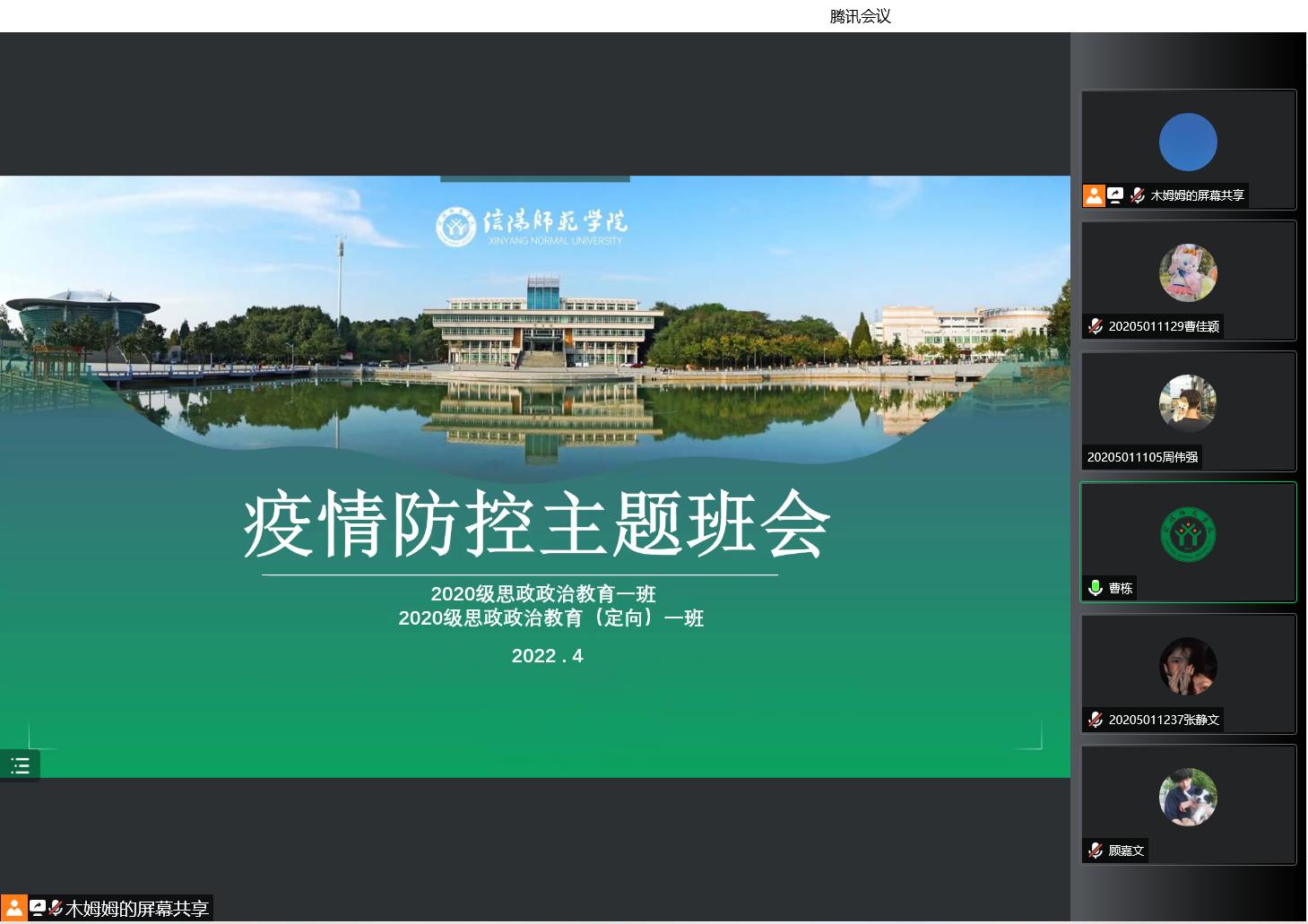 4月3日晚上,2026年世界杯官网2020级思想政治教育一班、定向一班在腾讯会议上顺利召开疫情防控主题班会。2020级思想政治教育一班、定向一班全体同学参加此次会议,会议由辅导员曹栋主持。