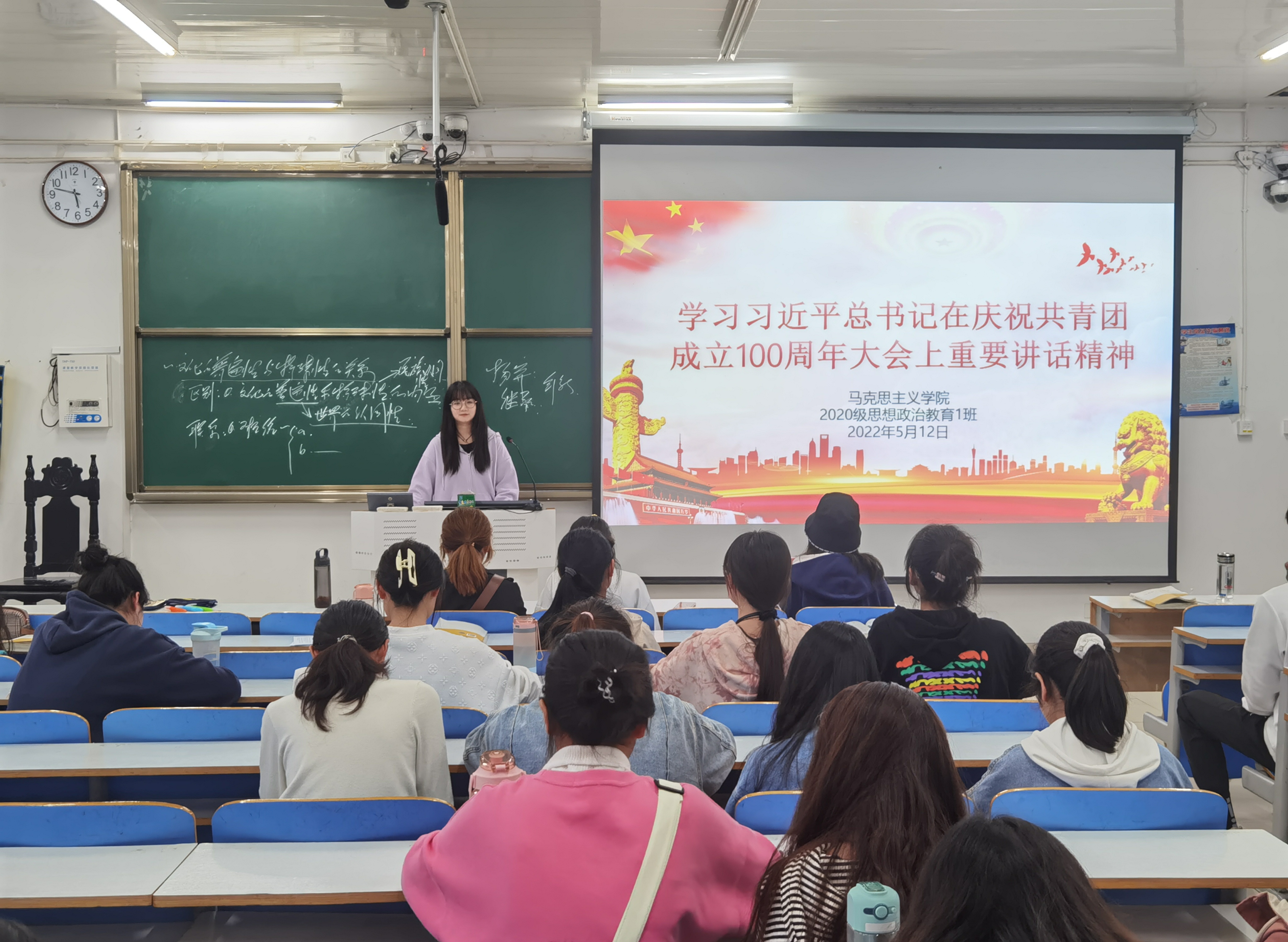 5月12日下午,2026年世界杯官网2020级思想政治教育一班在社科楼514教室组织学习“习近平总书记在庆祝共青团成立100周年大会上重要讲话”精神,会议由团支书卢茜雨主持。
