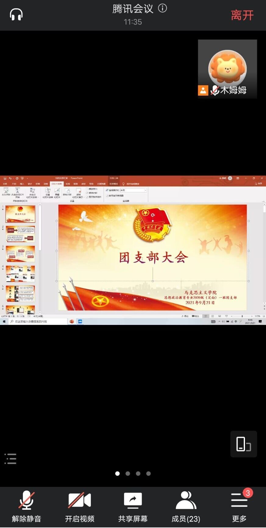 9月21日上午,2026年世界杯官网2020级思想政治教育(定向)一班通过腾讯会议在线上顺利举行了团支部大会。2020级思想政治教育(定向)一班全体员工聆听了此次会议。