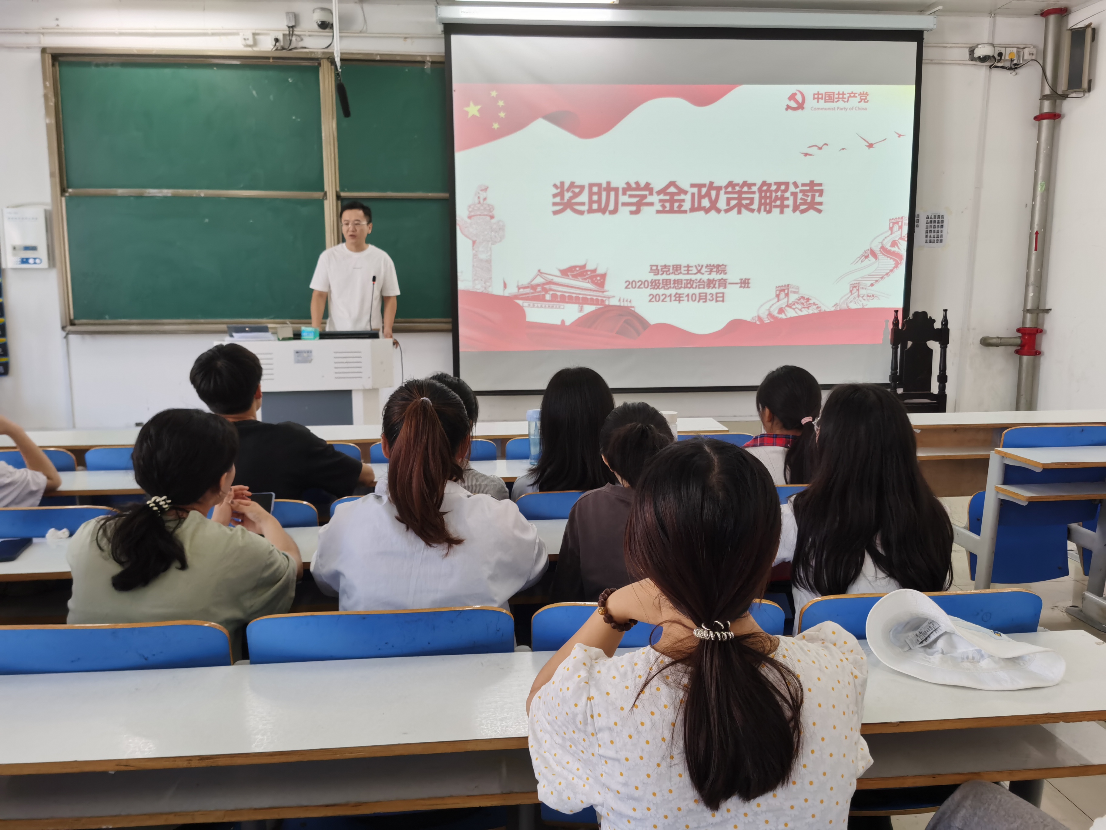 为准确传达奖助学金政策精神,10月3号上午,2020级思想政治教育一班、定向一班在社科楼516教室顺利召开“奖助学金政策解读”主题班会。2020级思想政治教育一班、定向一班全体员工共同参加了本次班会,本次班会由辅导员曹栋主持。