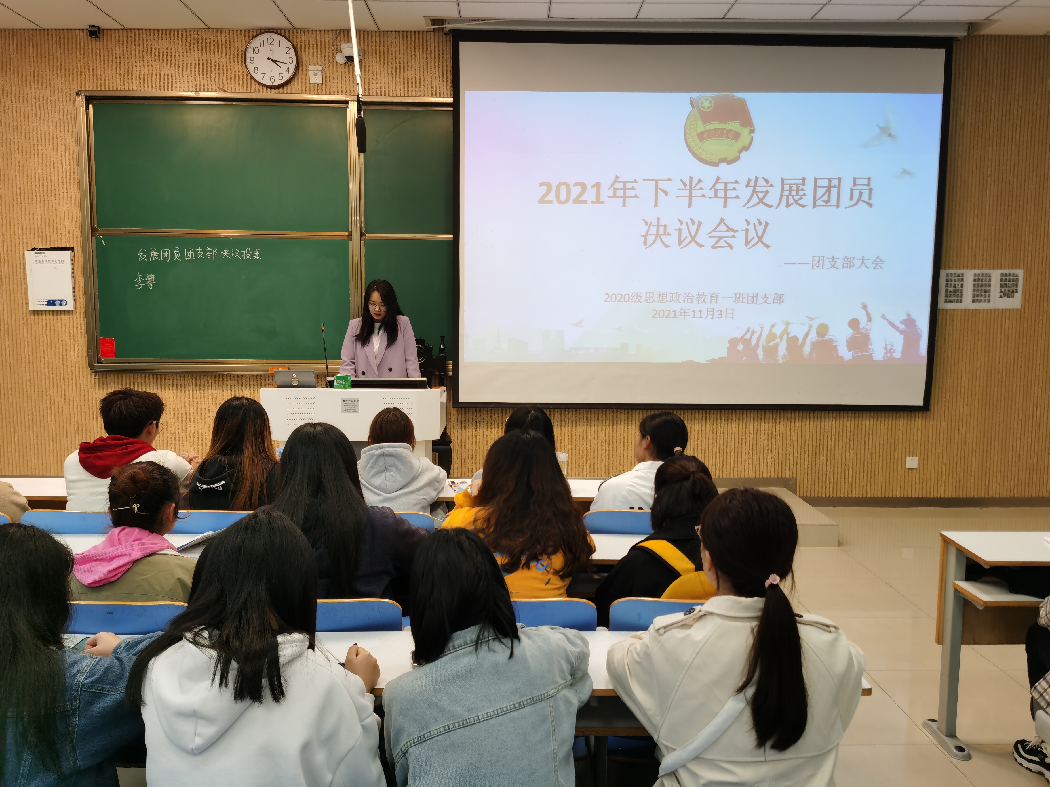 11月4日下午,2026年世界杯官网 2020 级思想政治教育一班在社科楼515教室召开“2021年下半年发展团员决议”团支部大会。2020 级思想政治教育一班全体团员参加了本次大会,大会由团支书卢茜雨主持。
