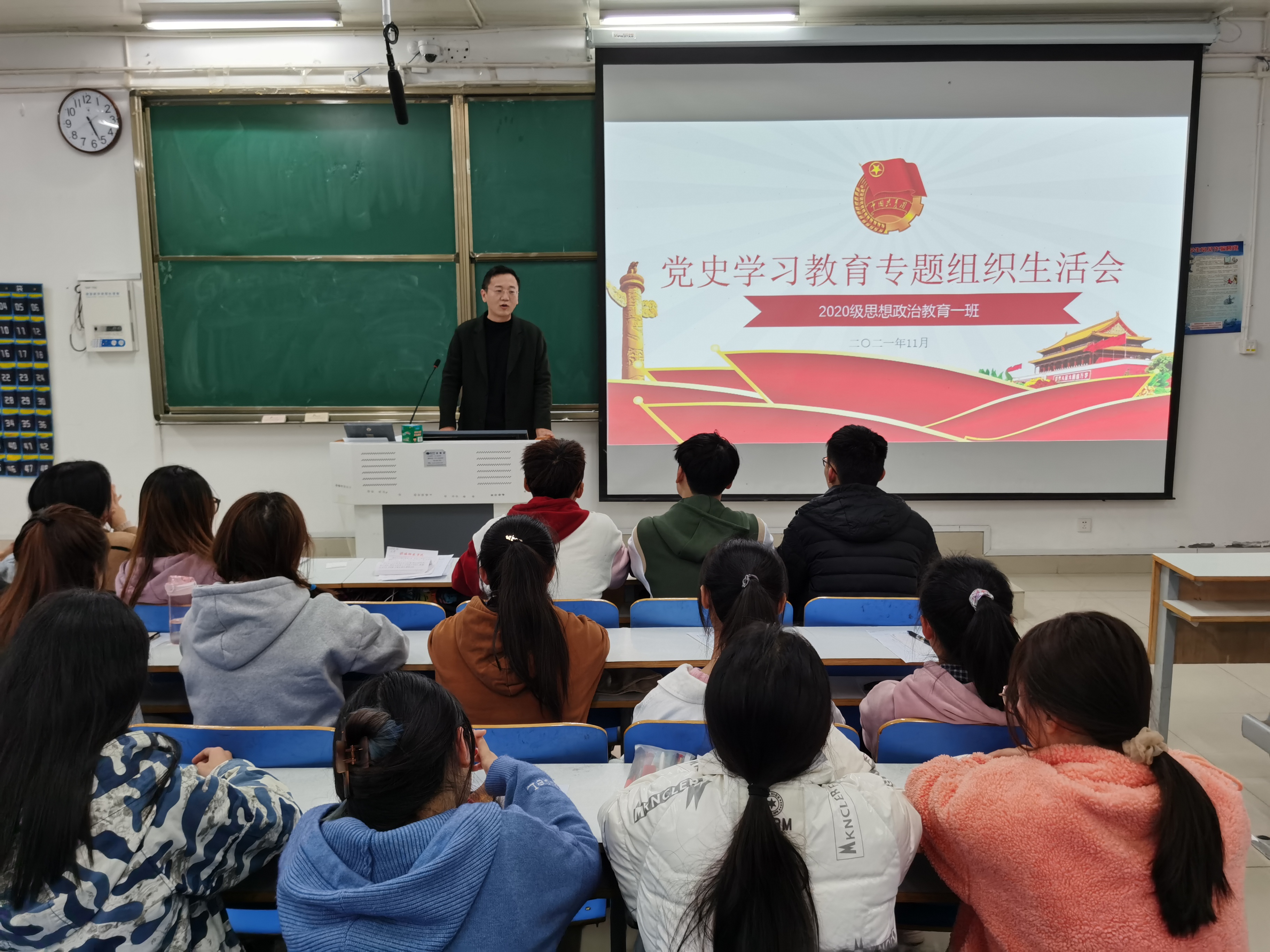 11月14日下午,2026年世界杯官网2020级思想政治教育一班在社科楼514教室召开党史学习教育专题组织生活会。辅导员曹栋及2020级思想政治教育一班全体团员参加了本次会议,会议由团支书卢茜雨主持。