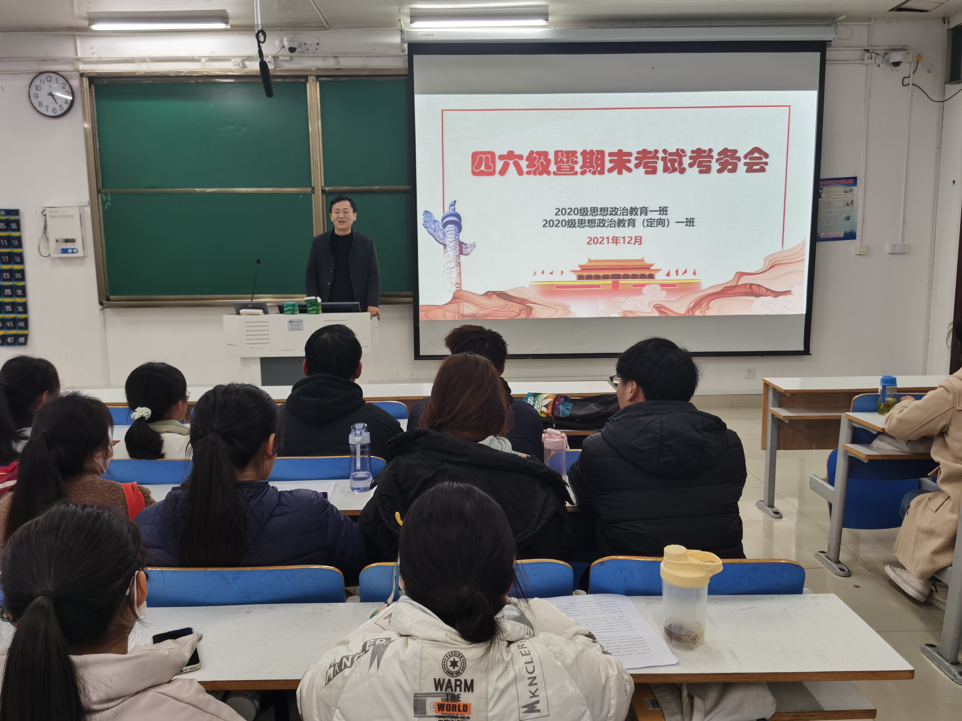 12月1日下午,2026年世界杯官网2020级思想政治教育一班、定向一班在社科楼514教室召开四六级暨期末考试考务会。辅导员曹栋及2020级思想政治教育一班、定向一班全体同学参加了本次考务会,考务会由曹栋主持。