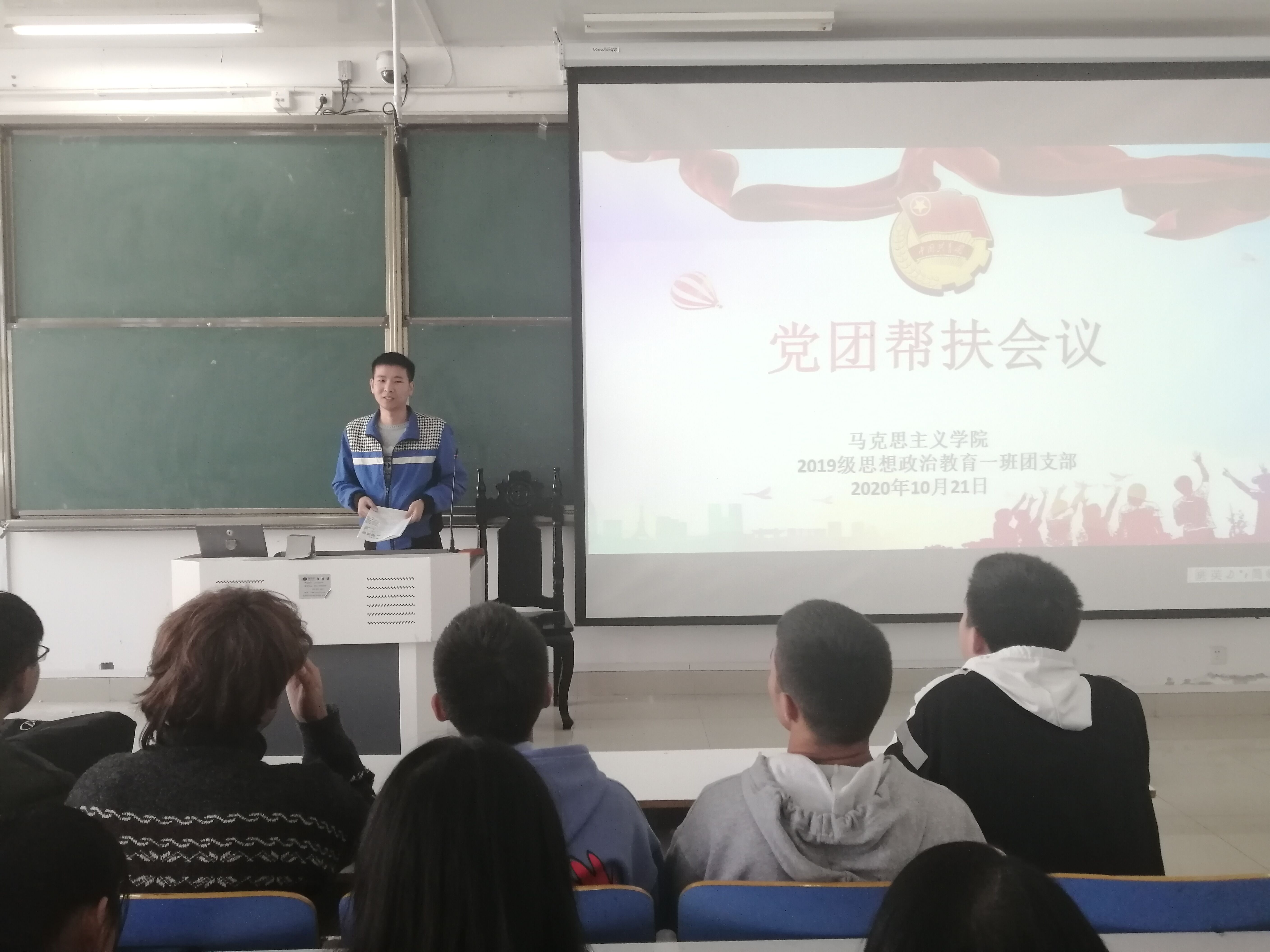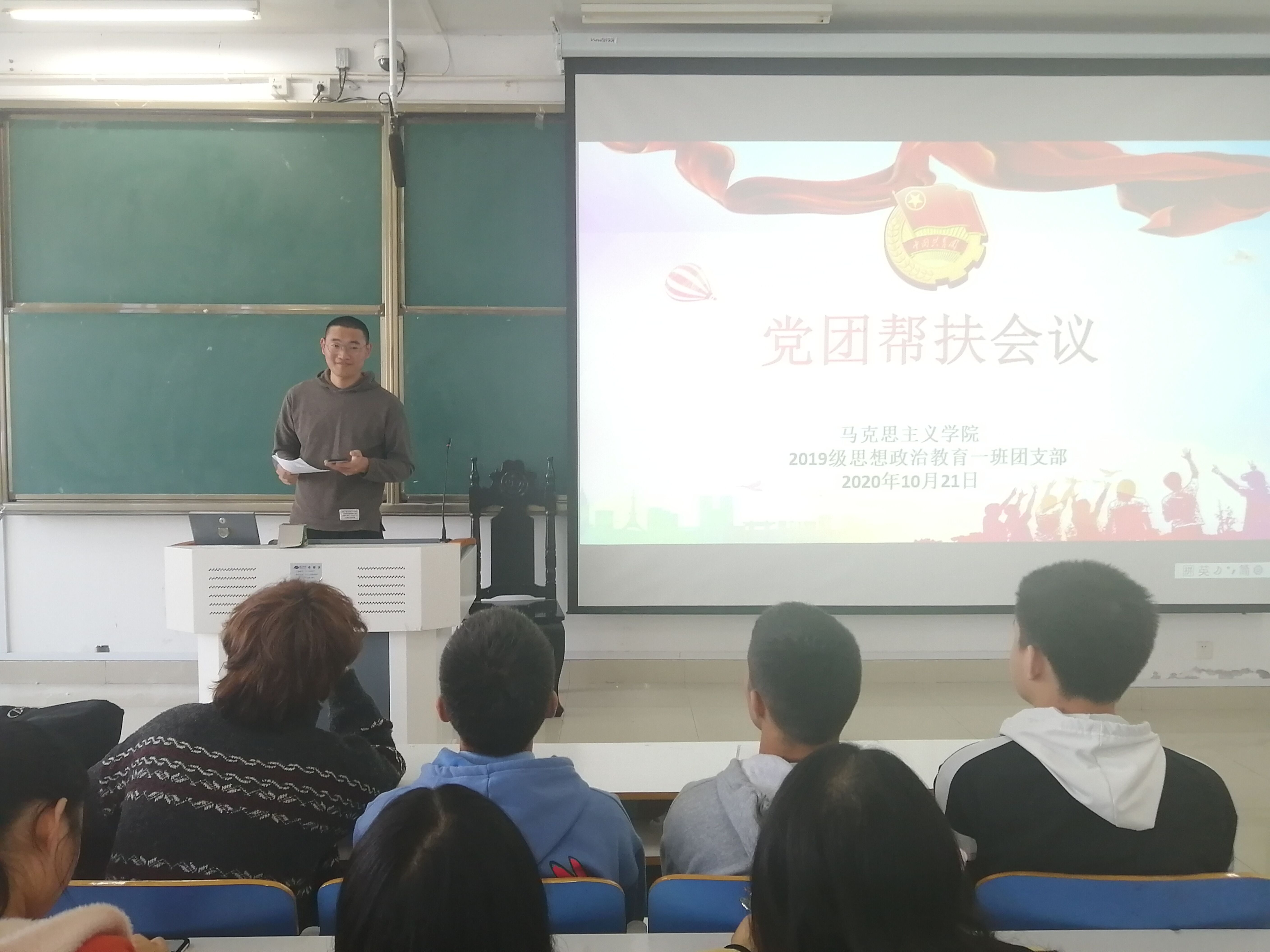 10月21日上午,2026年世界杯官网2019级思想政治教育一班在社科楼514教室召开党团帮扶会。2019级思想政治教育一班全体成员参加本次会议,由团支书贾子漪主持。