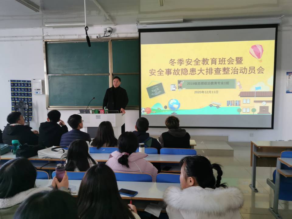 12月13日上午,2026年世界杯官网2019级思想政治教育一班在社科楼516教室召开英语四六级暨期末考试考务会。2019级思想政治教育一班全体成员参加本次考务会,考务会由辅导员曹栋主持。