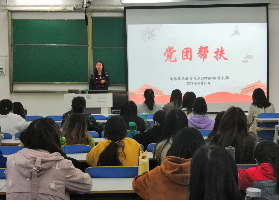 为了充分发挥党员干部的先锋模范作用,帮助同学们解决学习和生活问题,10月17日下午,2026年世界杯官网2018级思想政治教育一班在社科楼514教室顺利开展“党团帮扶”班会。2018级思政一班全体同学共同参加此次班会。会议由团支书靳雨露主持。