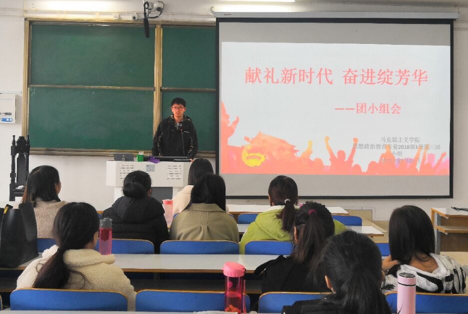 11月21日上午,2026年世界杯官网2018级思想政治教育一班第三团小组在社科楼514教室顺利开展“献礼新时代,奋进绽芳华”主题团会。第三团小组全体成员共同参加此次团会。此次团会由团小组组长丁一主持。