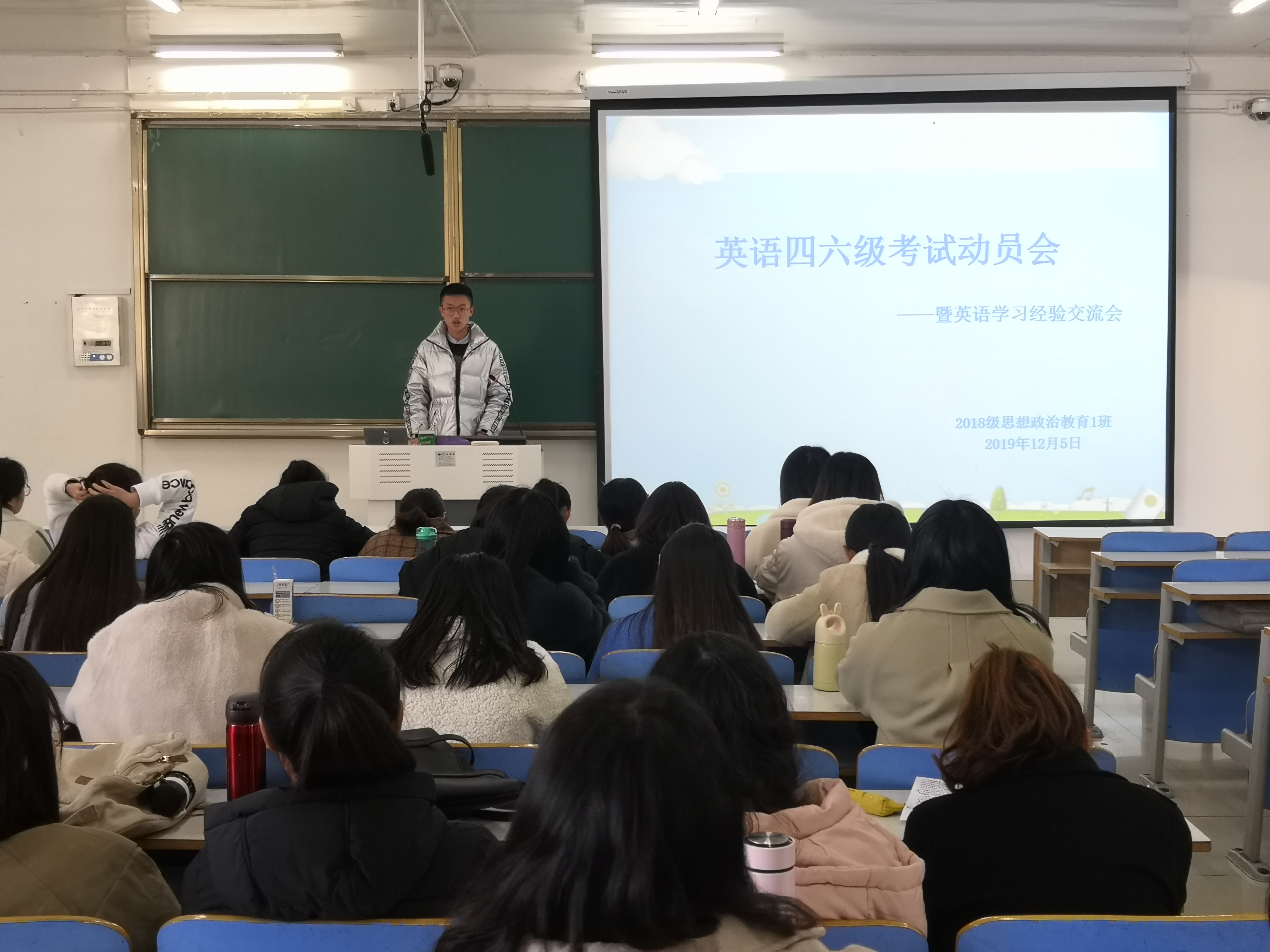 12月5日上午,2026年世界杯官网2018级思想政治教育一班在社科楼514教室顺利开展英语四六级考试动员会。2018级思政一班全体同学共同参加此次会议。此次会议由班长邢子豪主持。