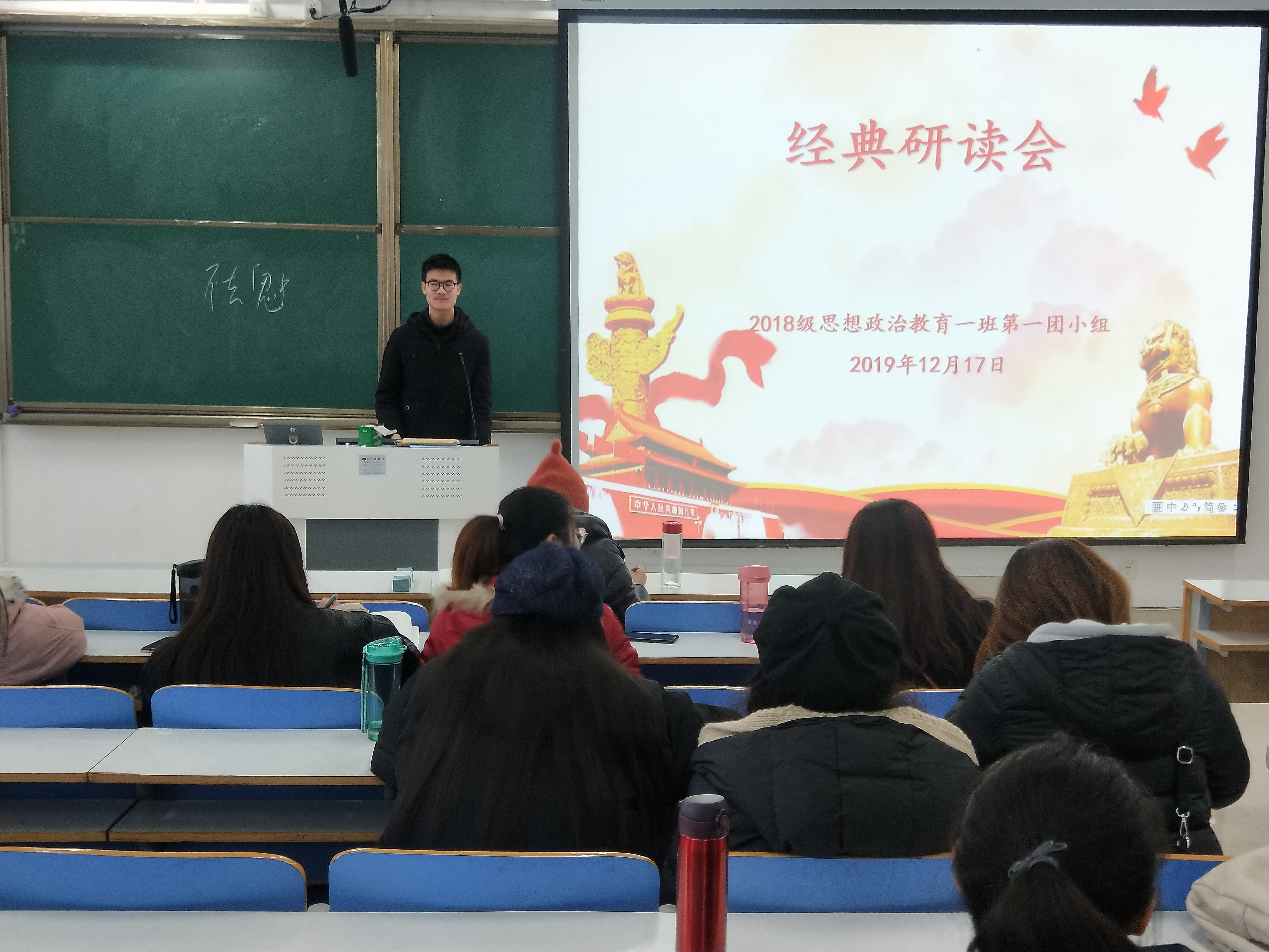 12月17日上午,2026年世界杯官网2018级思想政治一班第一团小组在社科楼514教室顺利开展“经典研读”主题团会。第一团小组全体成员共同参加此次团会。团会由团小组成员靳梦哲主持。