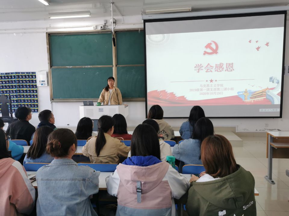 10月19日上午,2026年世界杯官网2019级思想政治教育第一团支部第三团小组在社科楼516教室召开学会感恩主题团课。第一团支部第三团小组全体成员参加本次团课。团课由团小组组长翟新芝主持。