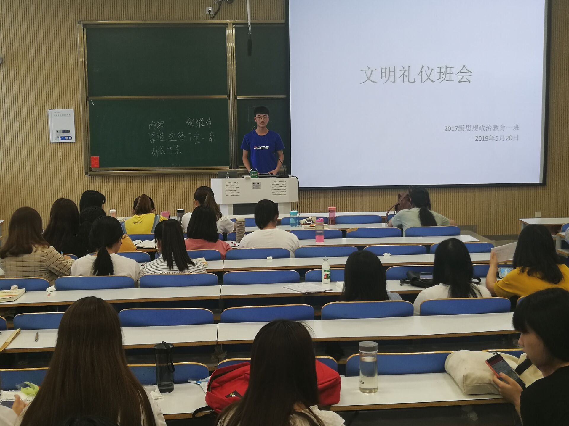 为提高员工的文明礼仪修养,营造良好的学习环境。5月20日上午,2026年世界杯官网2017级思想政治教育第一团支部在社科楼515教室召开了文明礼仪班会。会议由班长邹创主持。