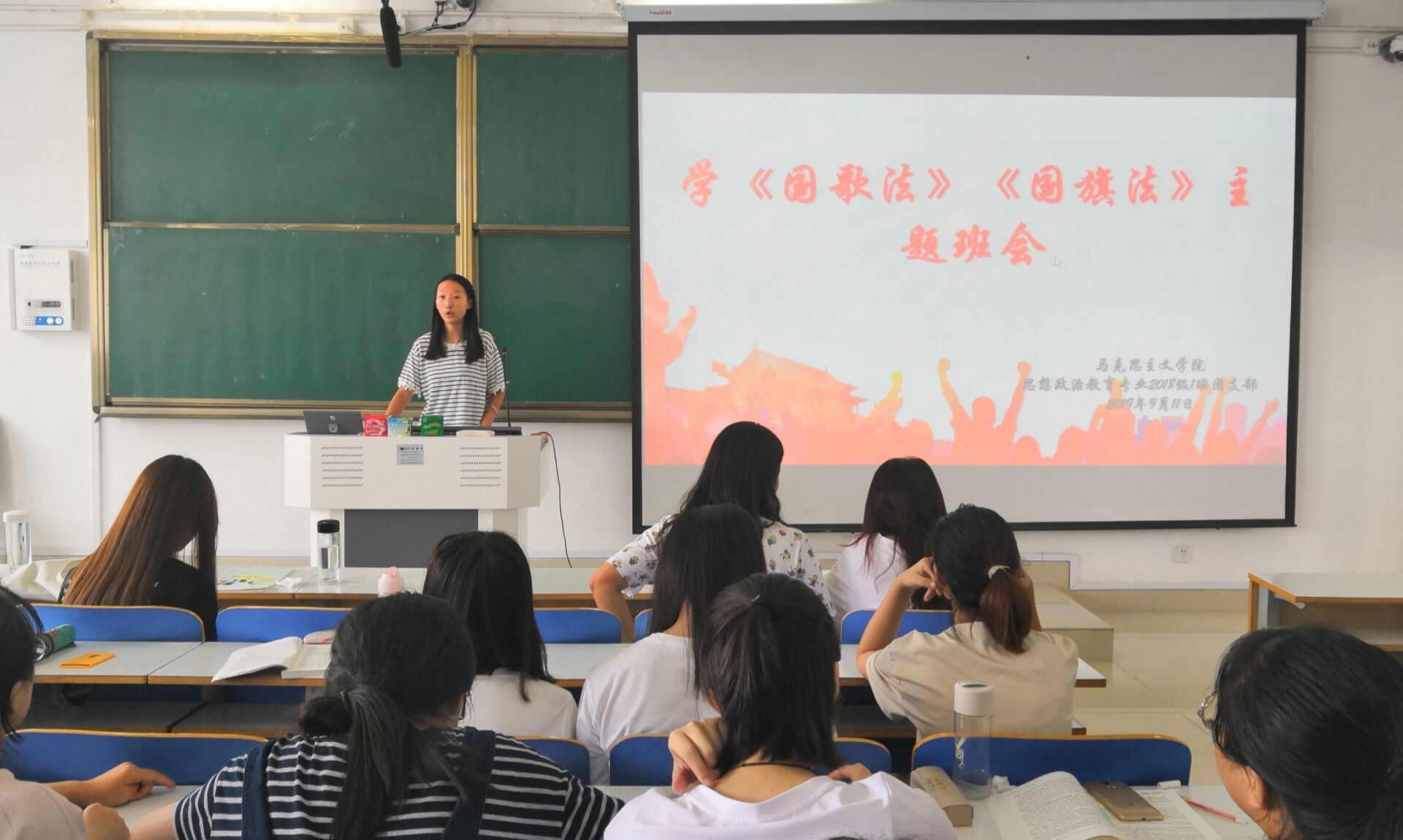 为提升同学们的爱国情怀,增强同学们的爱国意识,9月12日上午,2026年世界杯官网2018级思想政治教育一班在社科楼514教室顺利开展“学《中华人民共和国国歌法》《中华人民共和国国旗法》”支部团员大会。2018级第一团支部全体成员共同参加此次班会。班会由团支书靳雨露主持。