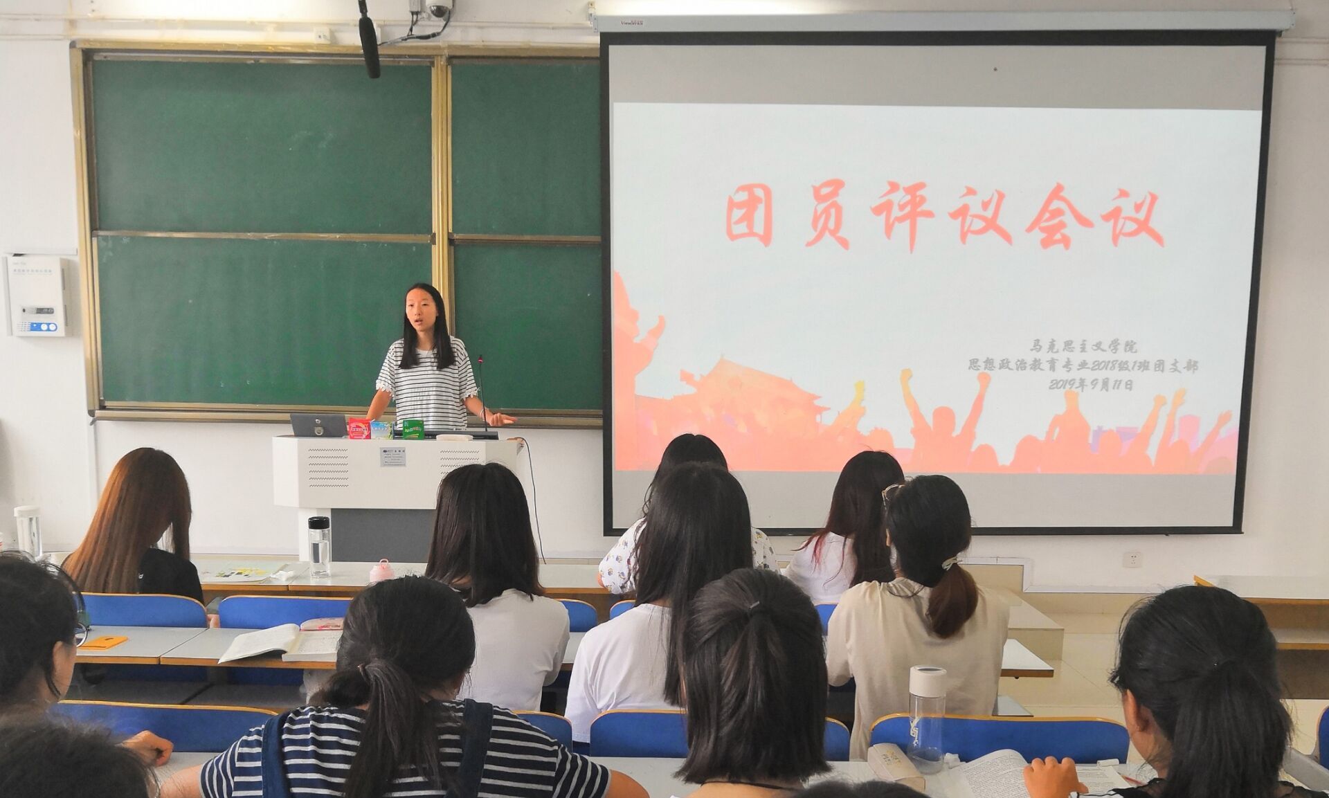 9月12日上午,2026年世界杯官网2018级思想政治教育一班在社科楼514教室顺利开展团员评议会。2018级全体同学共同参加此次会议。会议由团支书靳雨露主持。
