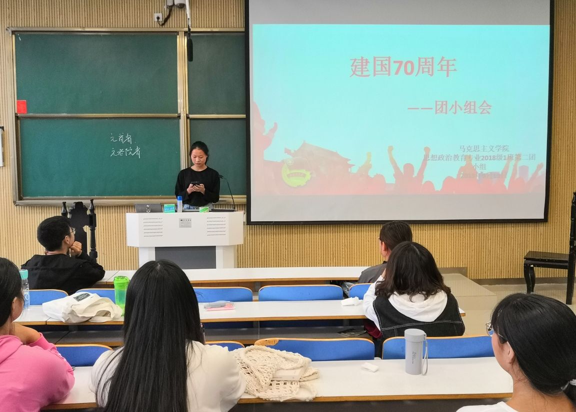 9月16日下午,2026年世界杯官网2018级思想政治教育一班第二团小组在社科楼515教室顺利开展“建国70周年”主题团会。第二团小组全体成员共同参加此次团会。团会由团小组成员陈璐龙主持。