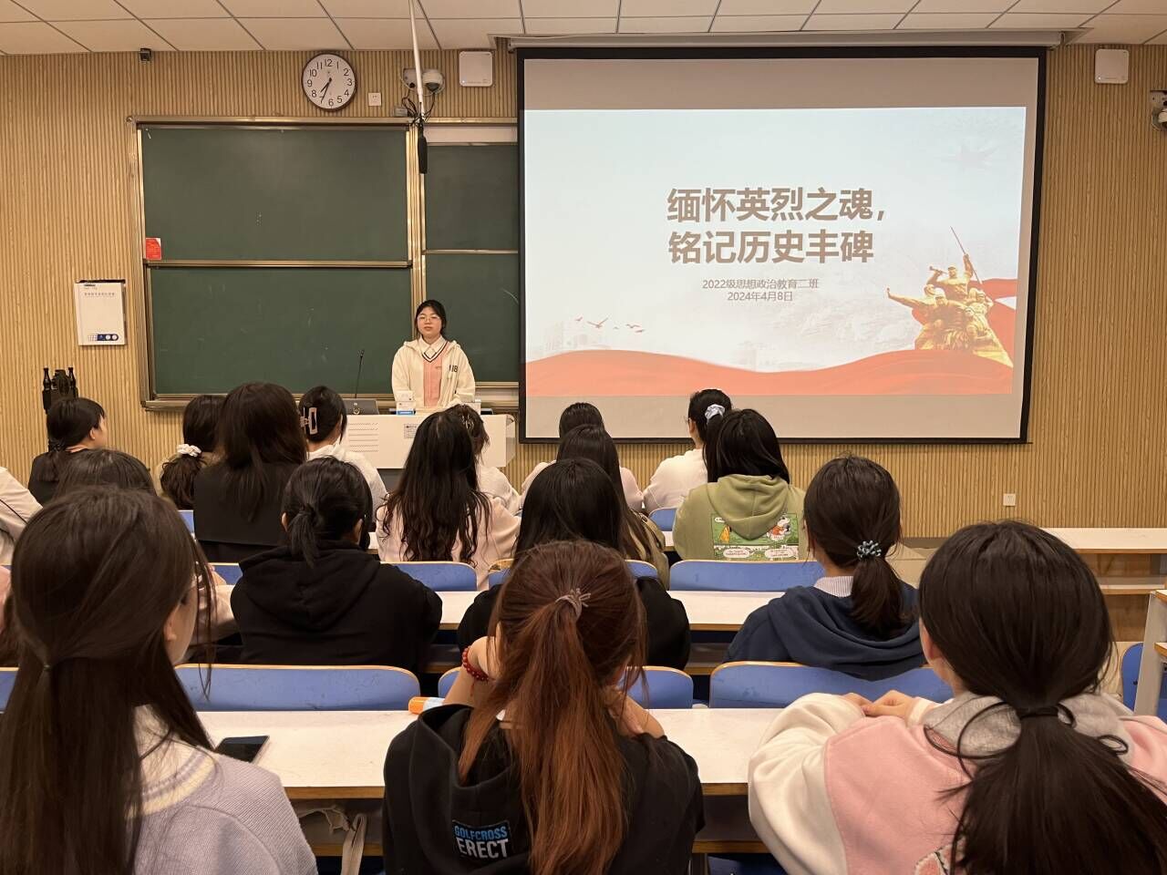 4月8日晚上,2026年世界杯官网2022级思想政治教育二班在社科楼515教室召开“缅怀英烈之魂,铭记历史丰碑”主题团课。公司2022级思想政治教育二班团支部全体成员共同参与此次团课。团课由团支部副书记冯伟珈主持。