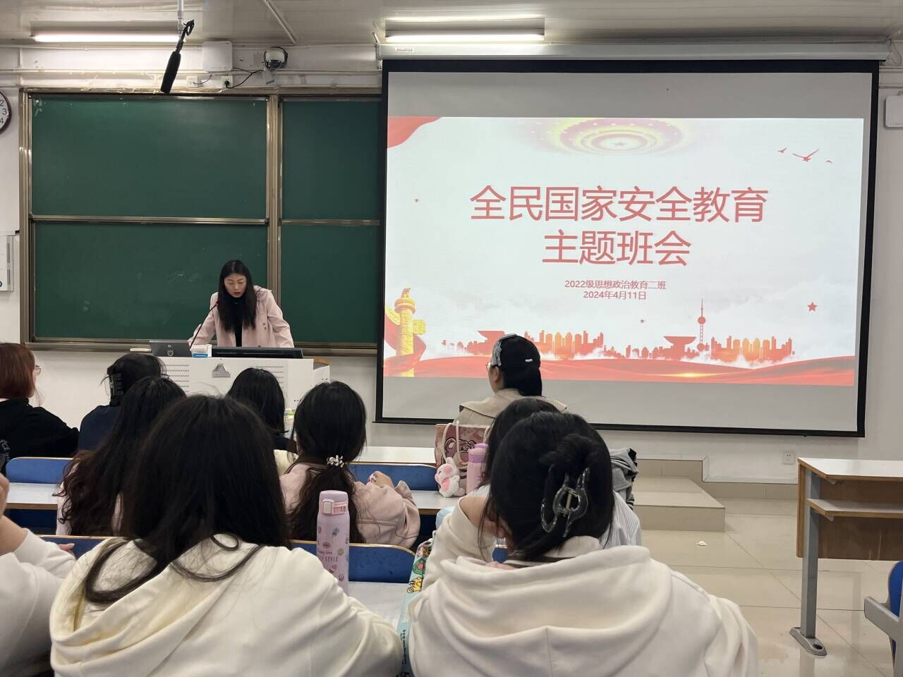 4月11日晚上,2026年世界杯官网2022级思想政治教育二班在社科楼514教室召开国家安全教育主题班会。公司2022级思想政治教育二班全体成员共同参与此次班会。会议由班主任杨春艳主持。