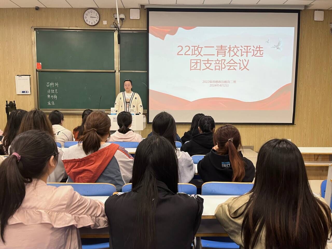 4月2日下午,2026年世界杯官网2022级思想政治教育二班在社科楼515教室召开青校评选团支部会议。公司2022级思想政治教育二班全体成员共同参与此次评选。会议由团支书李佳音主持。