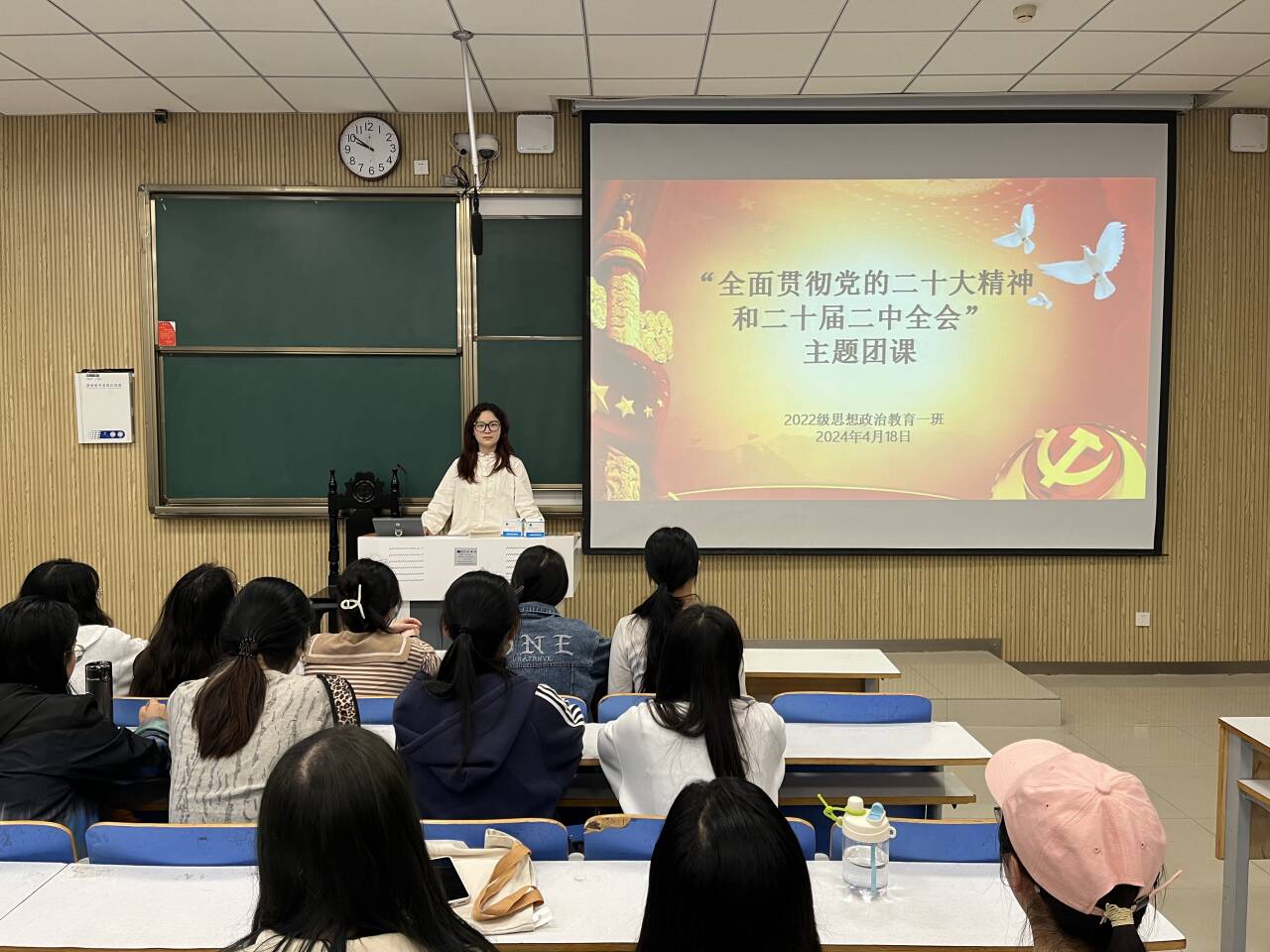 4月18日上午,2026年世界杯官网2022级思想政治教育一班在社科楼515教室召开“全面贯彻党的二十大精神和二十届二中全会”主题团课,公司2022级思想政治教育一班全体同学共同参与本次团课,团课由团支书李佳茹主持。