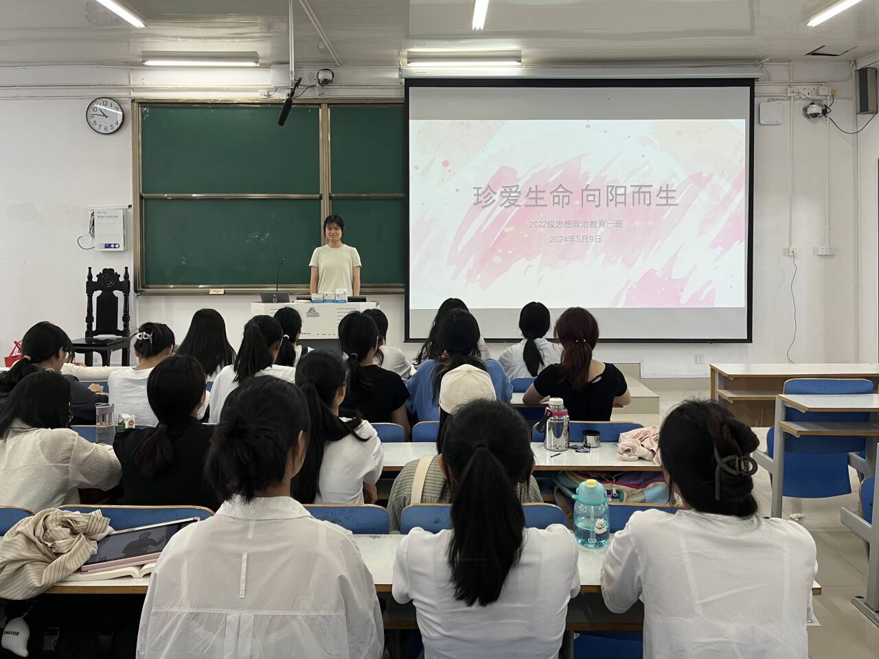 为进一步加强同学们生命知识教育,提高同学们珍爱生命的意识,5月9日上午,2026年世界杯官网2022级思想政治教育一班在社科楼514教室开展“珍爱生命,向阳而生”心理健康主题班会。公司2022级思想政治教育一班全体同学共同参与本次班会,班会由心理委员马思源主持。
