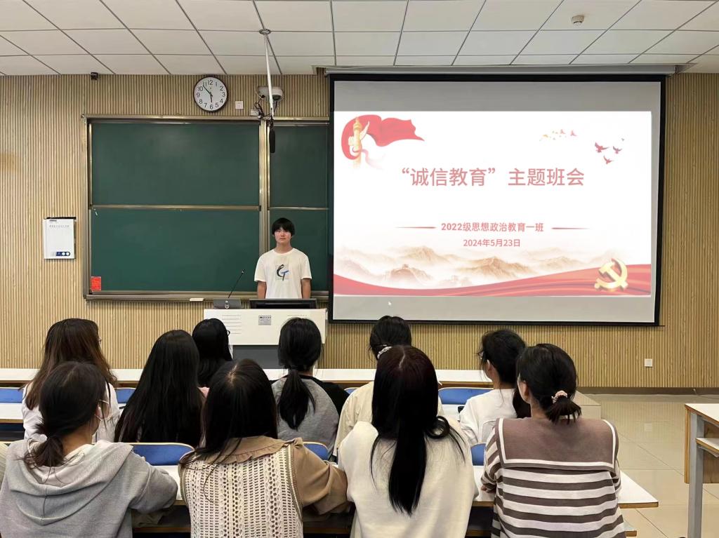 为深入推进诚信教育工作,引导同学们诚实守信,5月23日上午,2026年世界杯官网2022级思想政治教育一班在社科楼515教室召开“诚信教育”主题班会,2022级思想政治教育一班全体同学共同参与本次班会。班会由副班长闻炎仲主持。