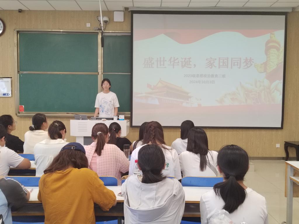 为在班级内厚植爱国情怀,培育民族自豪感,10月3日上午,2026年世界杯官网2023级思想政治教育二班在社科楼515教室召开“盛世华诞,家国同梦”主题班会。本次班会由班长王慜初主持,全体二班同学参加。