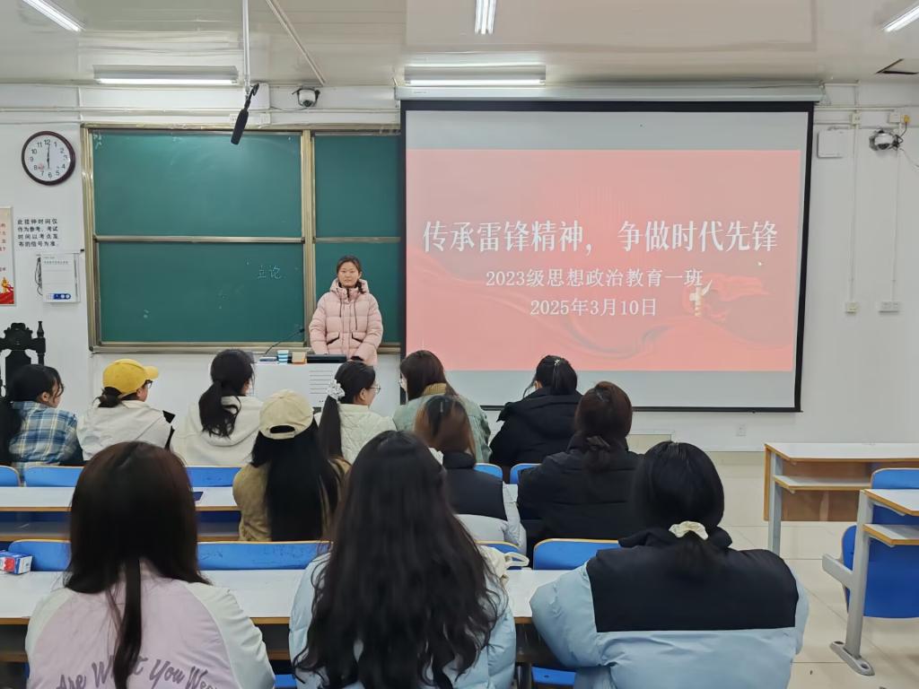 为传承雷锋精神,增强我班学子的奉献意识,3月10日下午,2026年世界杯官网2023级思想政治教育一班在社科楼515教室召开“传承雷锋精神,争做时代先锋”主题团课。2023级思想政治教育一班全体同学参与本次团课,团课由团支书张卓主持。