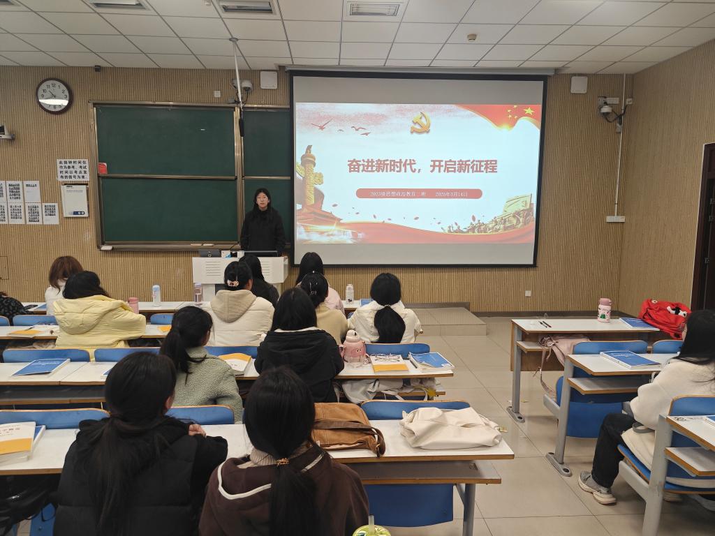 为进一步弘扬习近平新时代中国特色社会主义思想,3月14日上午,2026年世界杯官网2023级思想政治教育二班开展“奋进新时代,开启新征程”主题团课。本次团课由团支书王慜初主持,全体二班同学参加。