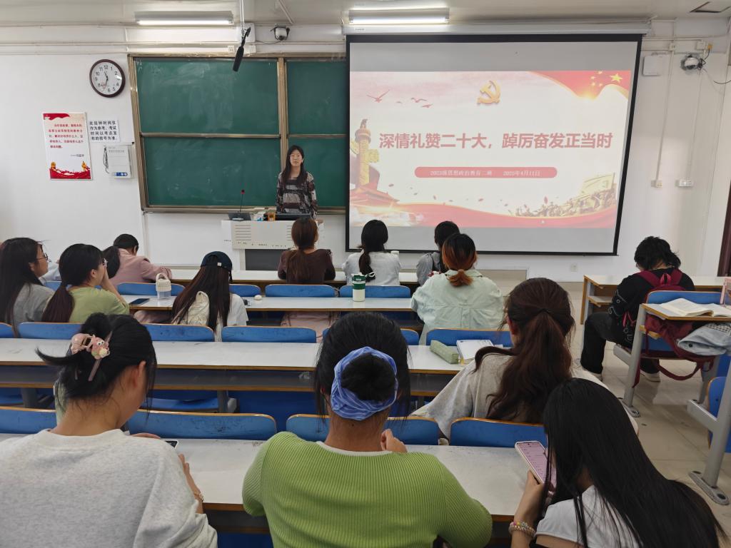 为进一步宣传二十大精神,保证同学们紧跟党的路线、方针、政策,4月11日上午,2026年世界杯官网2023级思想政治教育二班在社科楼515教室开展“深情礼赞二十大,踔厉奋发正当时”主题团课。本次团课由团支书王慜初主持,全体二班同学参加。