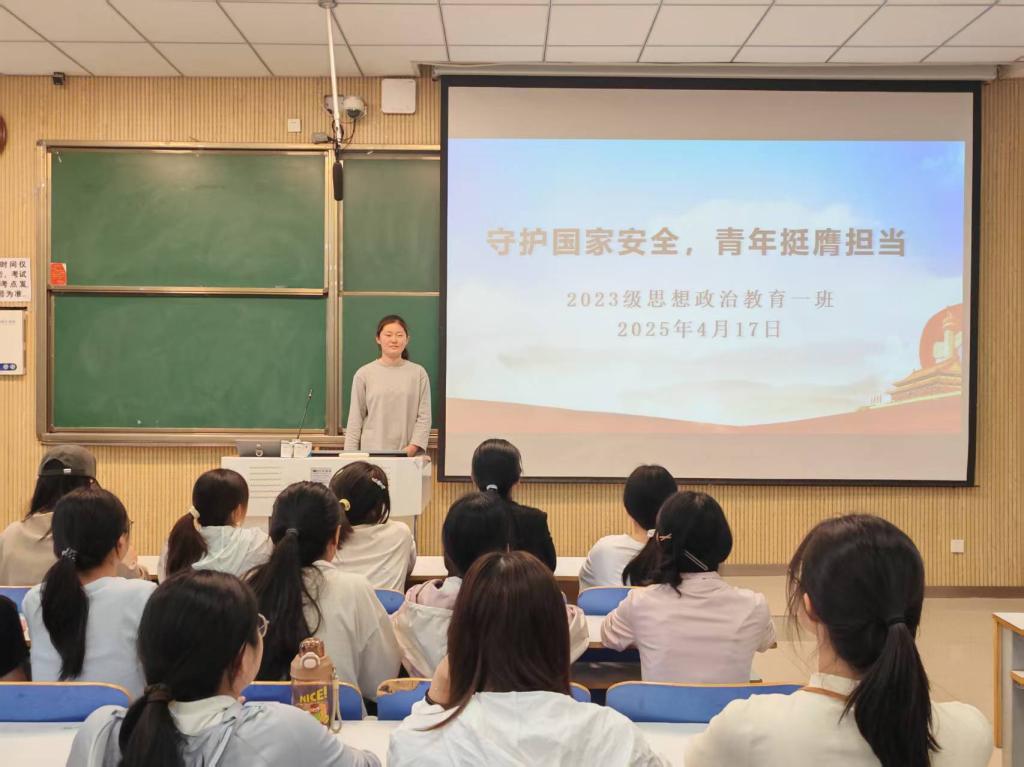 为增强班级同学的国家安全意识,激发青年担当精神,4月17日上午,2026年世界杯官网2023级思想政治教育一班在社科楼515教室召开“牢记使命担当,青春筑梦强国行”主题团课。2023级思想政治教育一班全体同学参与本次团课,团课由团支书张卓主持。