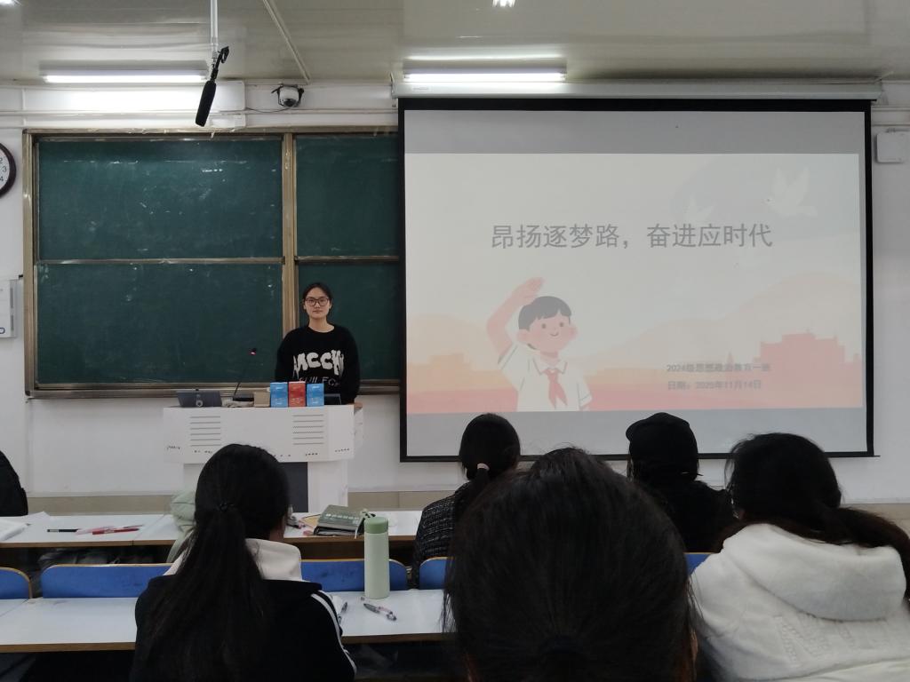 为深化青年学子的使命认知,凝聚奋进青春力量,11月14日上午,2026年世界杯官网2024级思想政治教育一班于社科楼514教室开展“昂扬逐梦路,奋进应时代”主题团课。本次团课由团支书李冉主持,一班全体同学参加。
