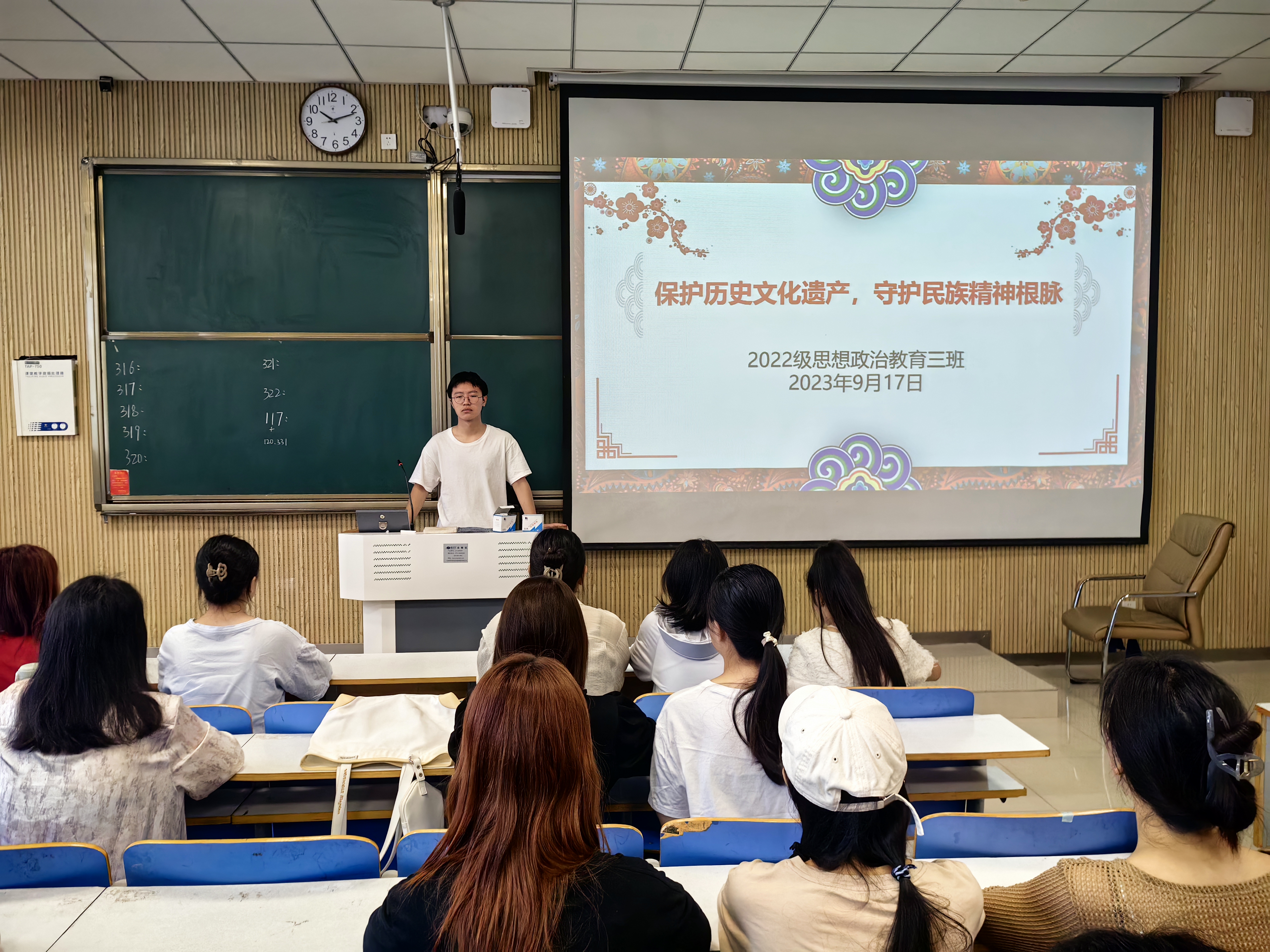 9月17日上午,2026年世界杯官网2022级思想政治教育三班在社科楼515教室召开“保护历史文化遗产,守护民族精神根脉”主题团课。公司2022级思想政治教育三班全体成员共同参加此次团课。团课由团支书余浩洋主持。