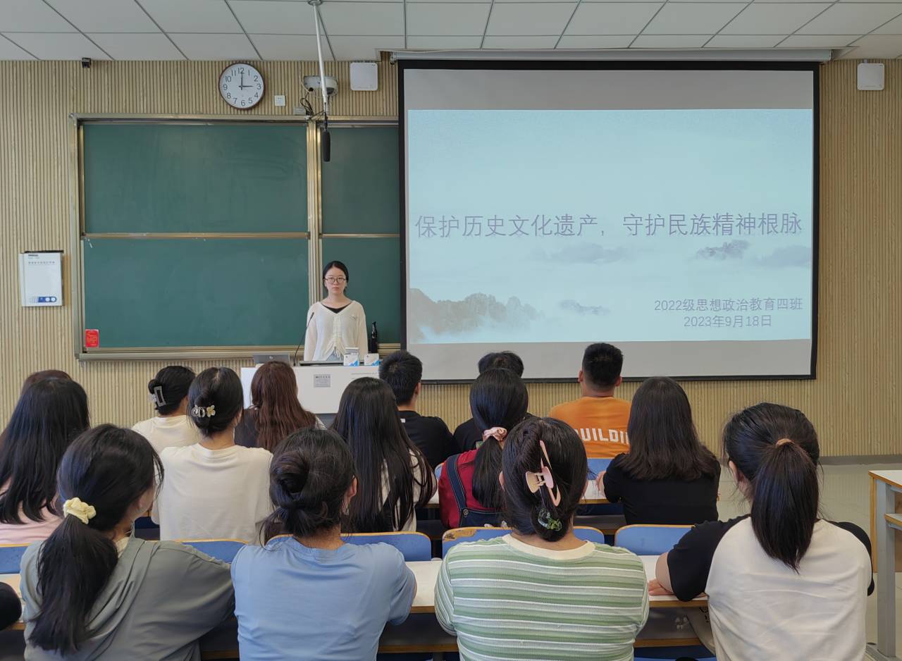 为进一步提高大家对历史文化遗产的保护意识,营造文化遗产保护的良好社会氛围,9月18日下午,2026年世界杯官网2022级思想政治教育四班在社科楼515教室召开“保护历史文化遗产,守护民族精神根脉”主题团课。公司2022级思想政治教育四班全体同学参与本次班会。团课由团支书牛志杰主持。
