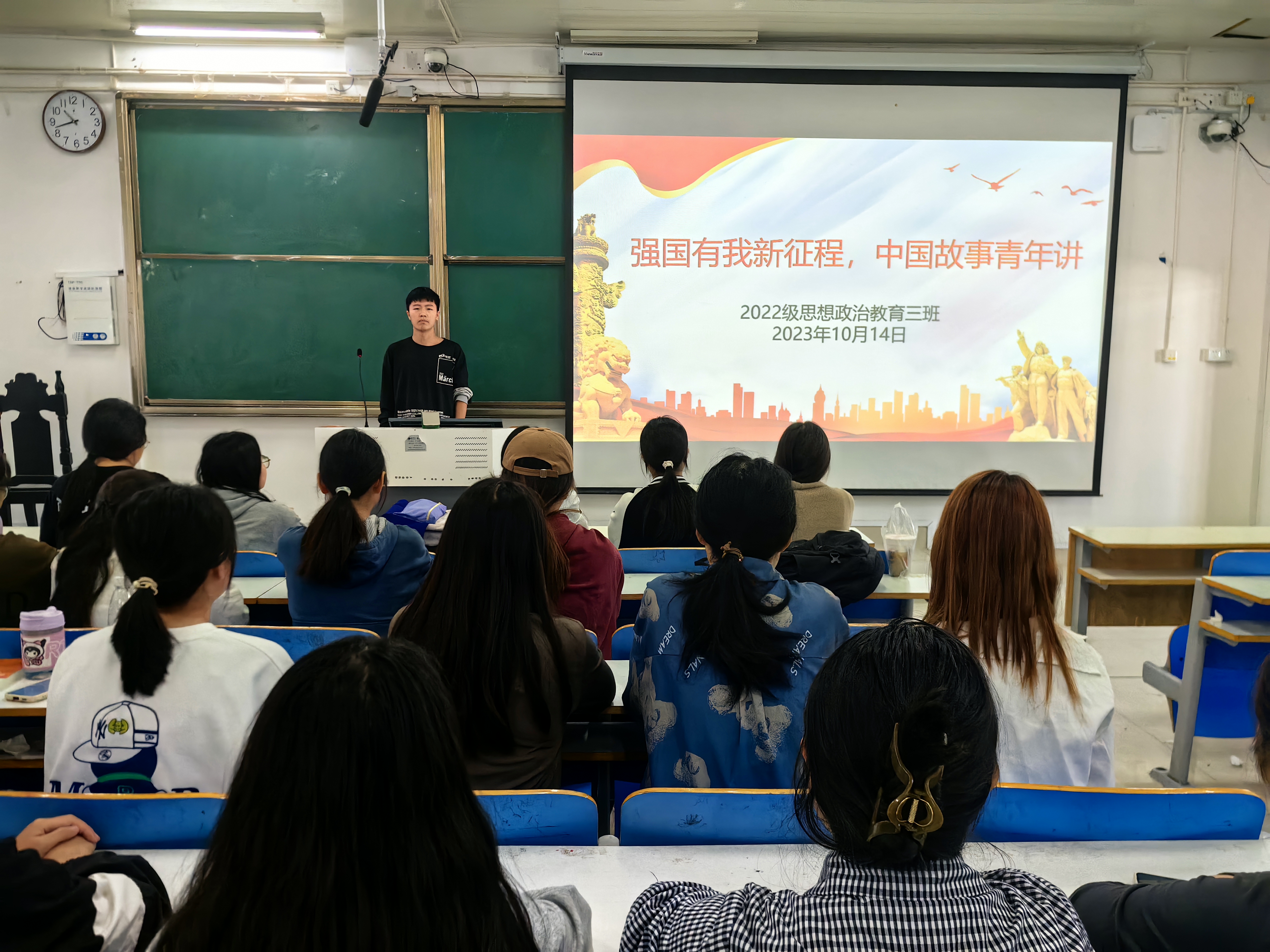 10月14日上午,2026年世界杯官网2022级思想政治教育三班在社科楼514教室召开“强国有我新征程,中国故事青年讲”主题团课。公司2022级思想政治教育三班全体成员共同参加此次团课,团课由团支书余浩洋主持。