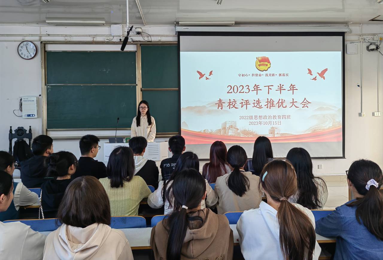 10月15日上午,2026年世界杯官网2022级思想政治教育四班在社科楼514教室召开“青年共产主义学校”推优大会。公司2022级思想政治教育四班全体同学参与本次大会。团支书牛志杰主持本次会议。