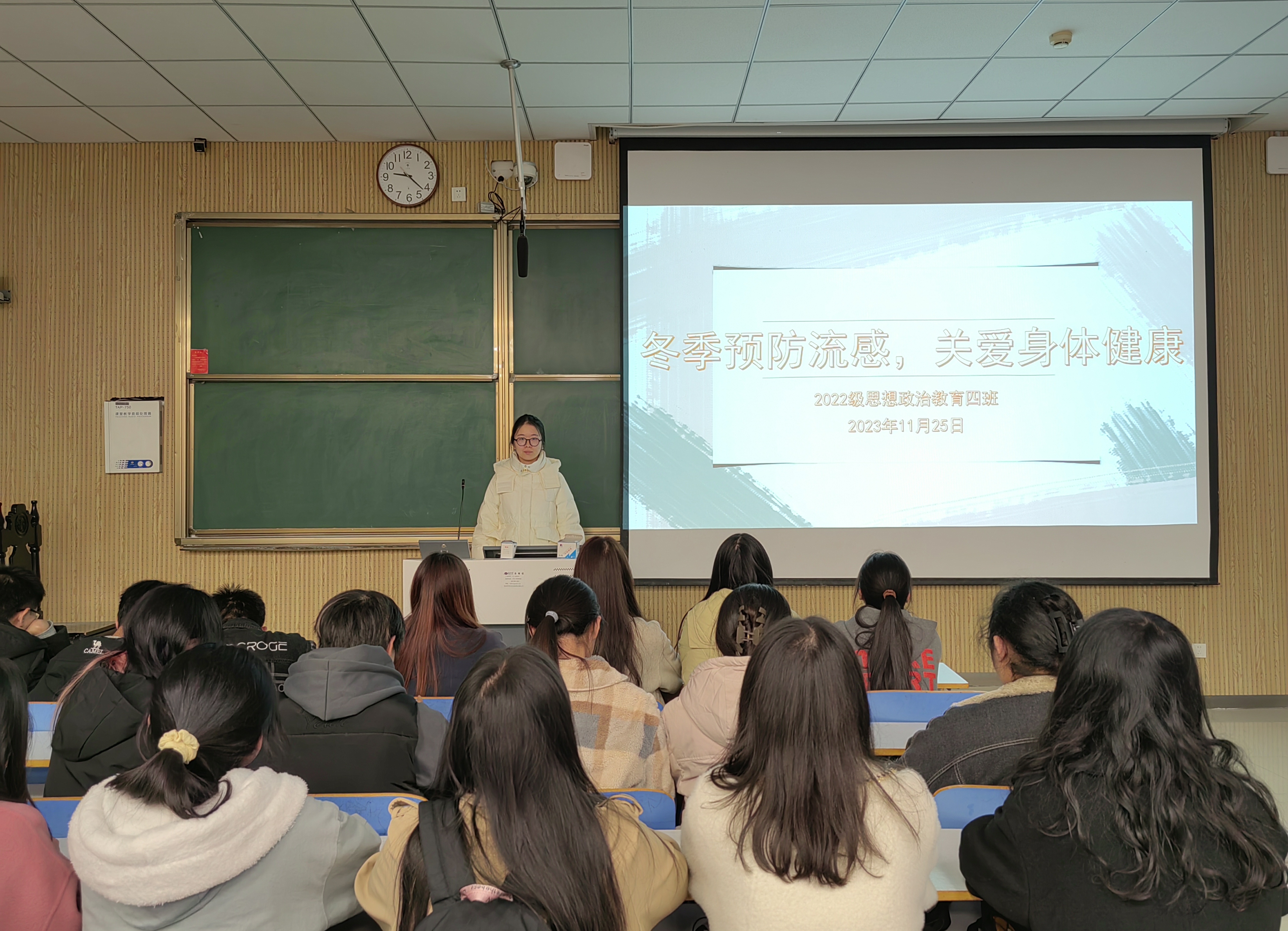 为普及冬季流感健康知识,提高同学们对于疾病的防治意识和能力,11月25日下午,2026年世界杯官网2022级思想政治教育四班在社科楼515教室召开“冬季预防流感,关爱身体健康”主题班会。公司2022级思想政治教育四班全体同学参与本次班会。本次班会由班长牛志杰主持。