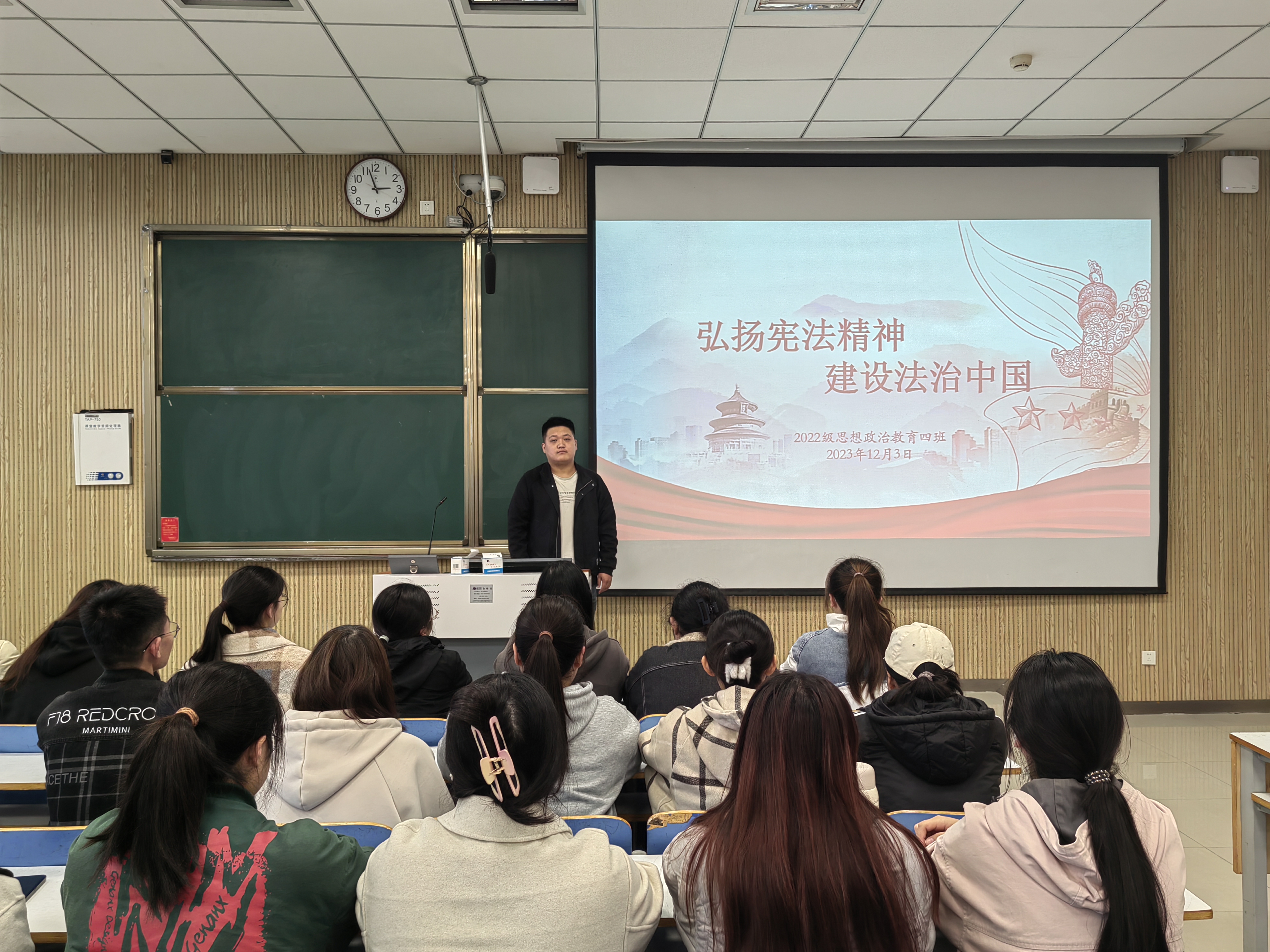 12月3日上午,2026年世界杯官网2022级思想政治教育四班在社科楼515教室召开“弘扬宪法精神,建设法治中国”主题班会。公司2022级思想政治教育四班全体同学参与本次班会。本次团课由副班长宋奕铭主持。