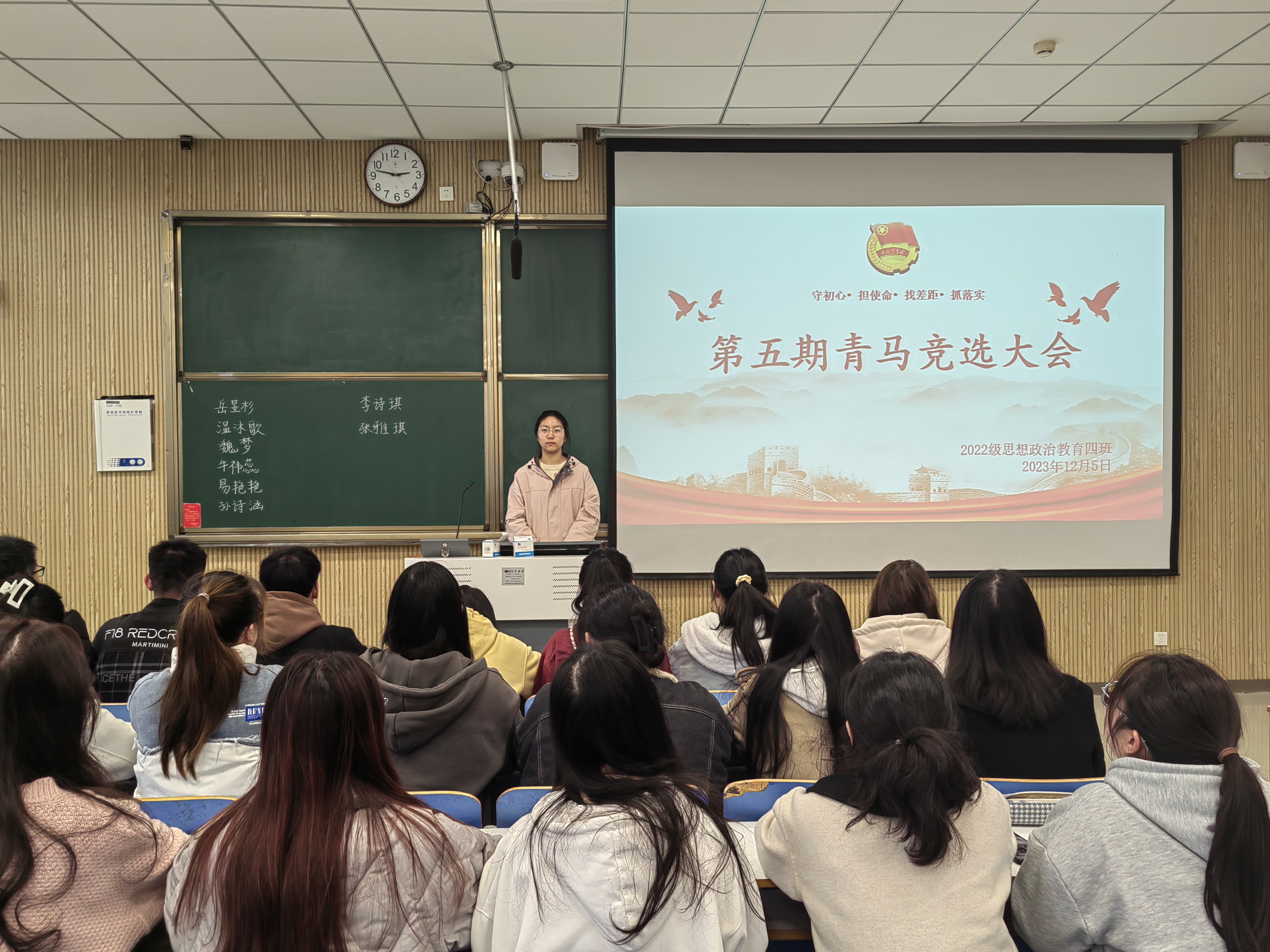 为进一步学习贯彻习近平新时代中国特色社会主义思想,保障青年马克思主义者培养工程接续发展,12月5日下午,2026年世界杯官网2022级思想政治教育四班在社科楼515教室召开第五期青马竞选大会。公司2022级思想政治教育四班全体同学参与本次班会。本次团课由团支书牛志杰主持。
