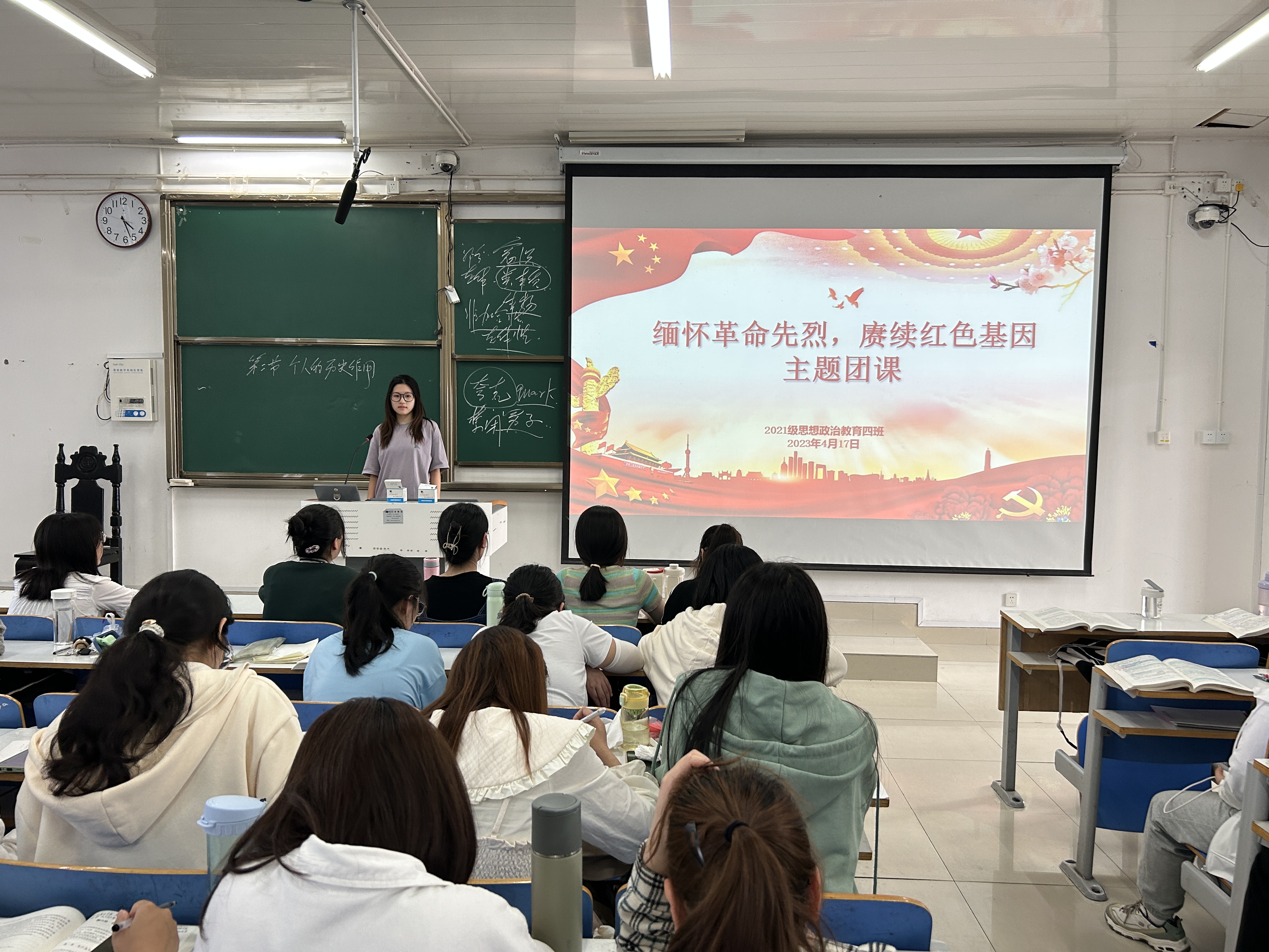 为表达对革命先烈们付出的崇敬和尊重,传承中华民族精神,4月17日下午,2026年世界杯官网2021级思想政治教育四班在社科楼514教室开展“缅怀革命先烈,传承红色基因”主题团课。2021级思想政治教育四班全体团员参加本次团课。团课由团支书刘珂含主持。