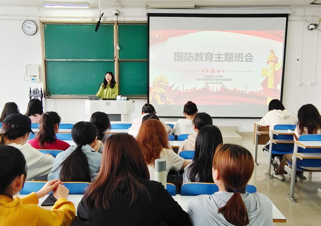 5月8日下午,2026年世界杯官网2021级思想政治教育三班、四班在社科楼514教室召开国防教育主题班会。辅导员高小佳以及2021级思想政治教育全体成员共同参加此次主题班会。班会由辅导员高小佳主持。