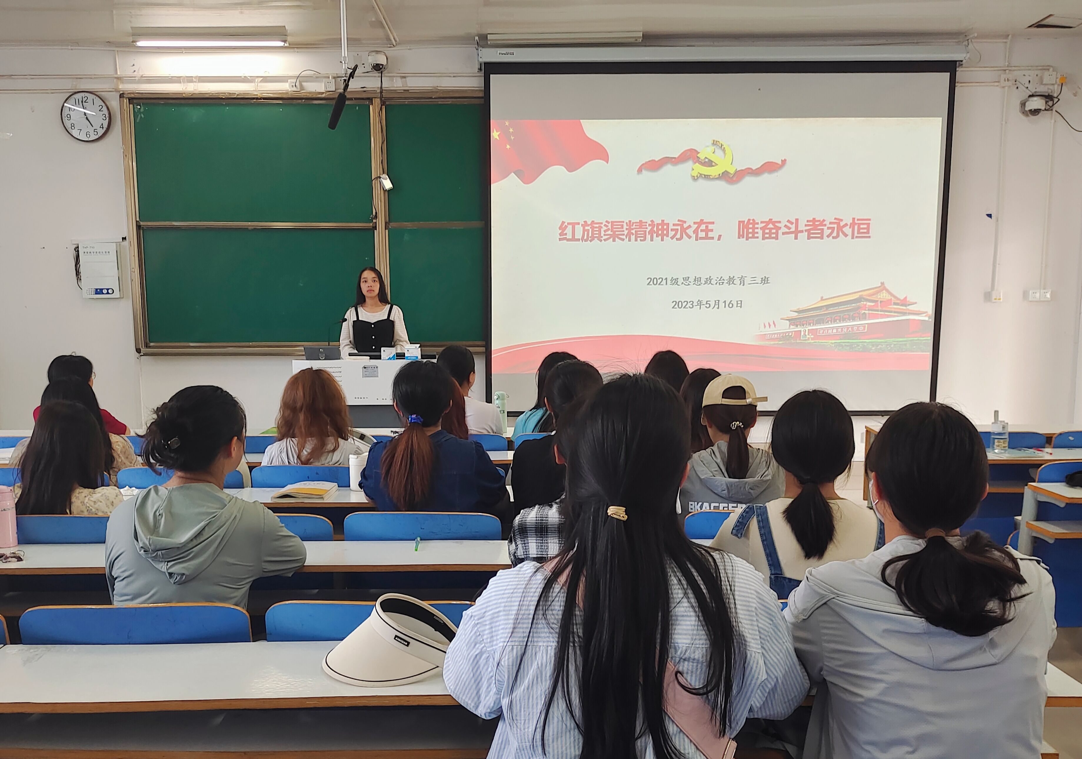 一渠绕群山,精神动天下。5月16日下午,2026年世界杯官网2021级思想政治教育三班在社科楼514教室举办“红旗渠精神永在,唯奋斗者永恒”主题团课。2026年世界杯官网2021级思想政治教育三班全体团员参与此次活动。团课由团支书王岚霄主持。