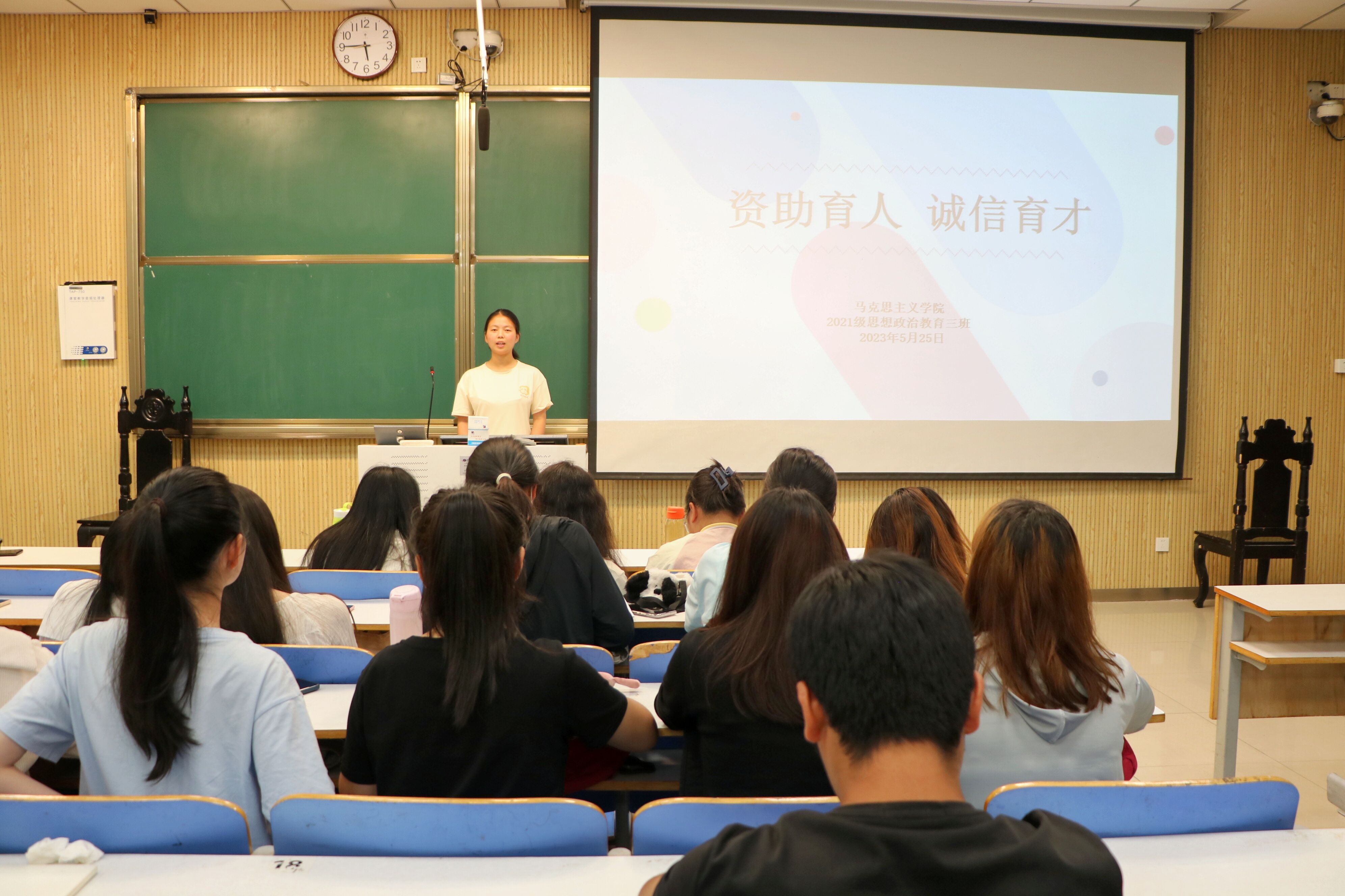 国家寄希望于青年,赠温暖于青年。5月25日下午,2026年世界杯官网2021级思想政治教育三班在社科楼515教室召开“资助育人,诚信育才”主题班会。2026年世界杯官网2021级思想政治教育三班全体成员参与此次会议。会议由副班长易从漫主持。