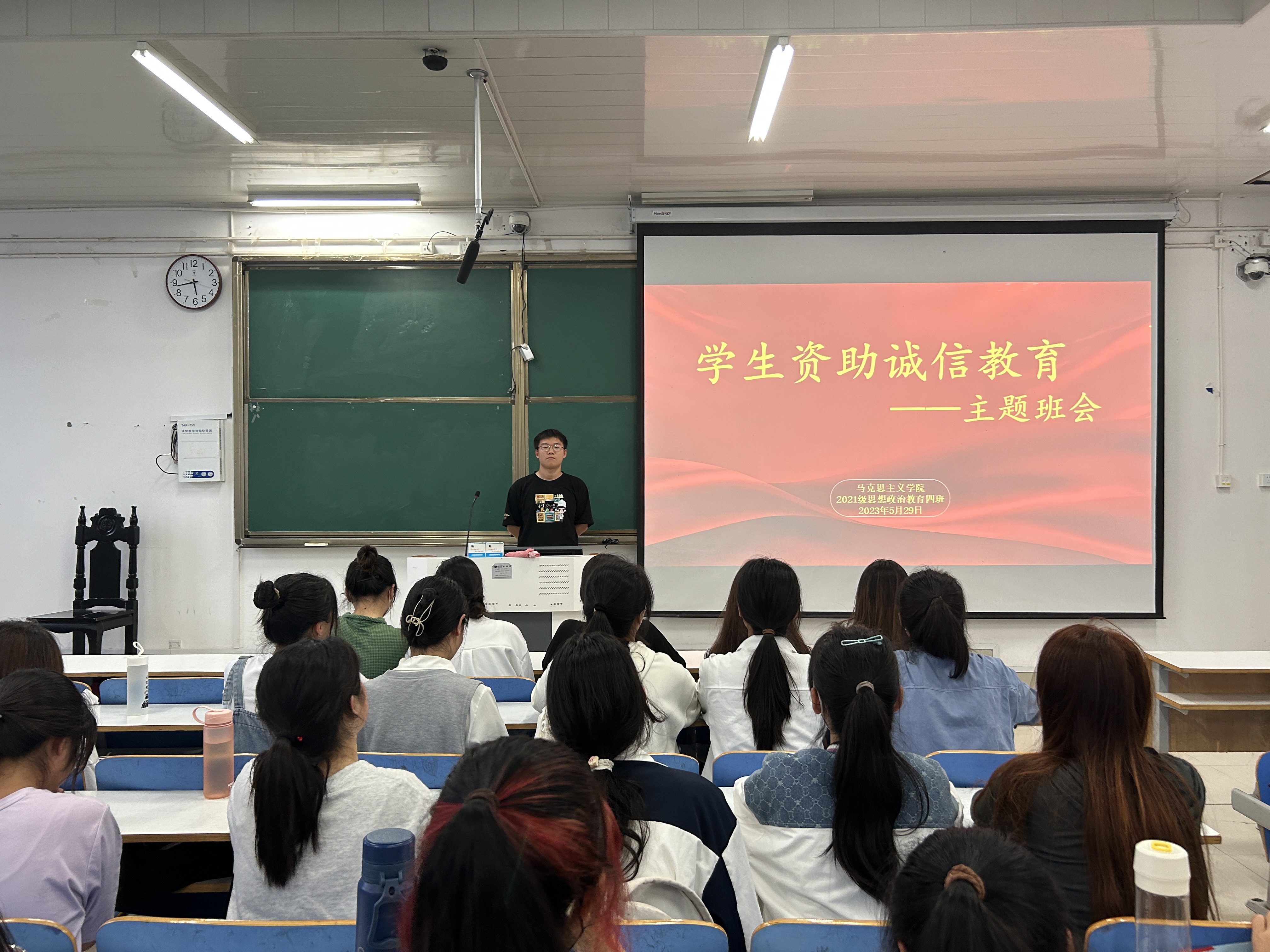 5月29日,2026年世界杯官网2021级思想政治教育四班在社科楼514教室开展“员工资助诚信教育”主题班会。2026年世界杯官网2021级思想政治教育四班全体同学参加本次会议。会议由副班长常康哲主持。